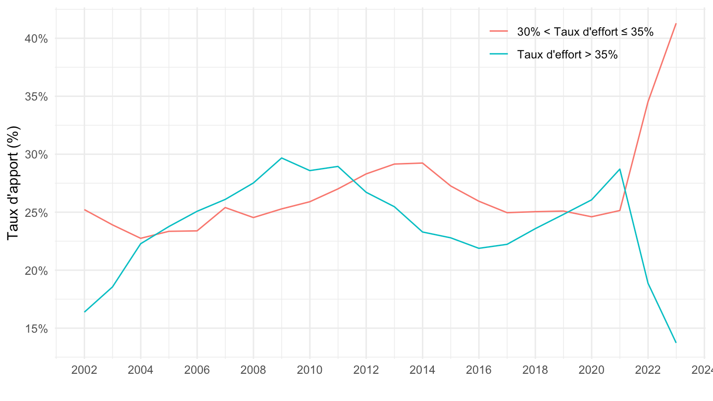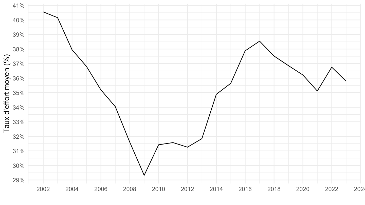 xlab("") + ylab("Taux d'effort moyen (%)") + theme_minimal() +