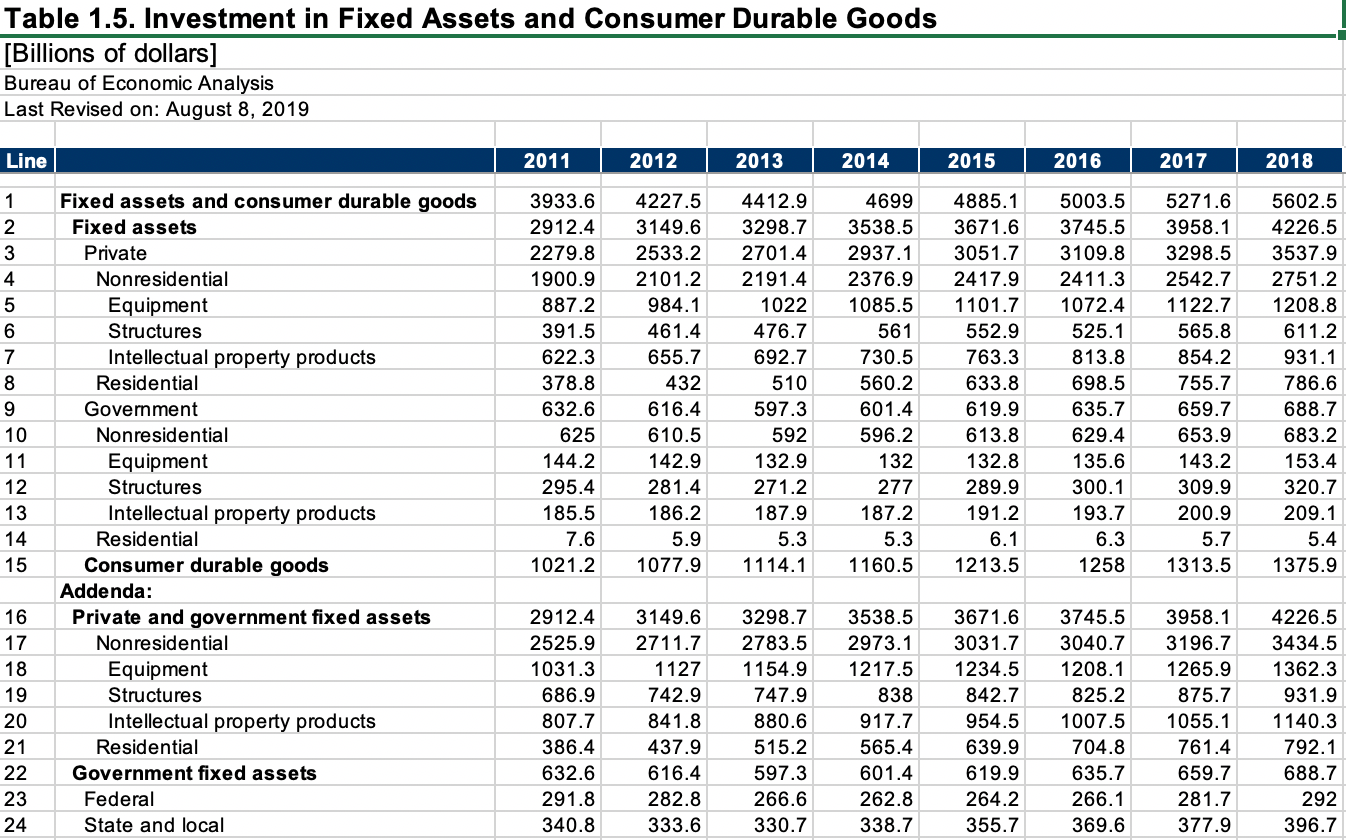 Table 1.5. Investment in Fixed Assets and Consumer Durable Goods (A) - FAAt105