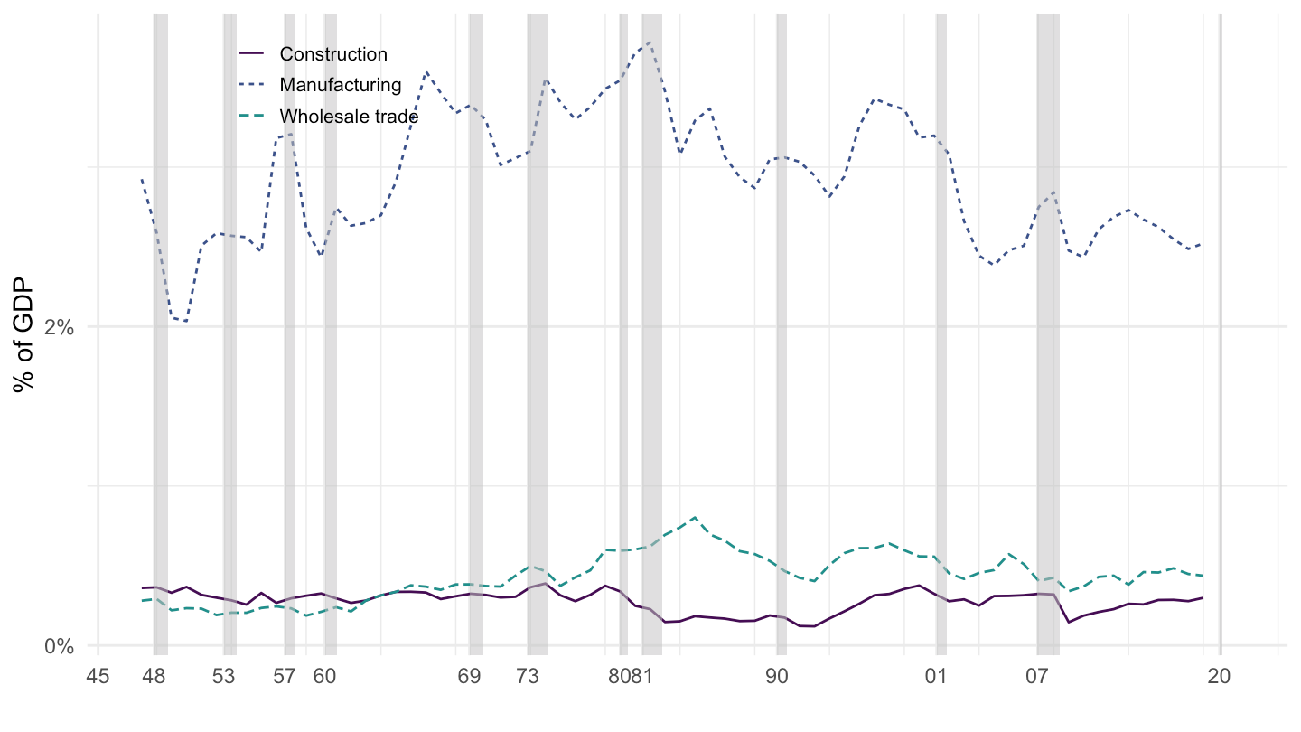 ggplot + geom_line(aes(x = date, y = value, color = variable, linetype = variable)) +