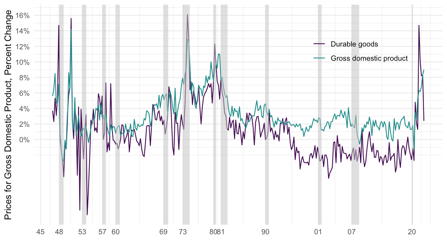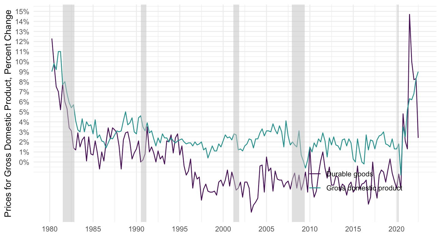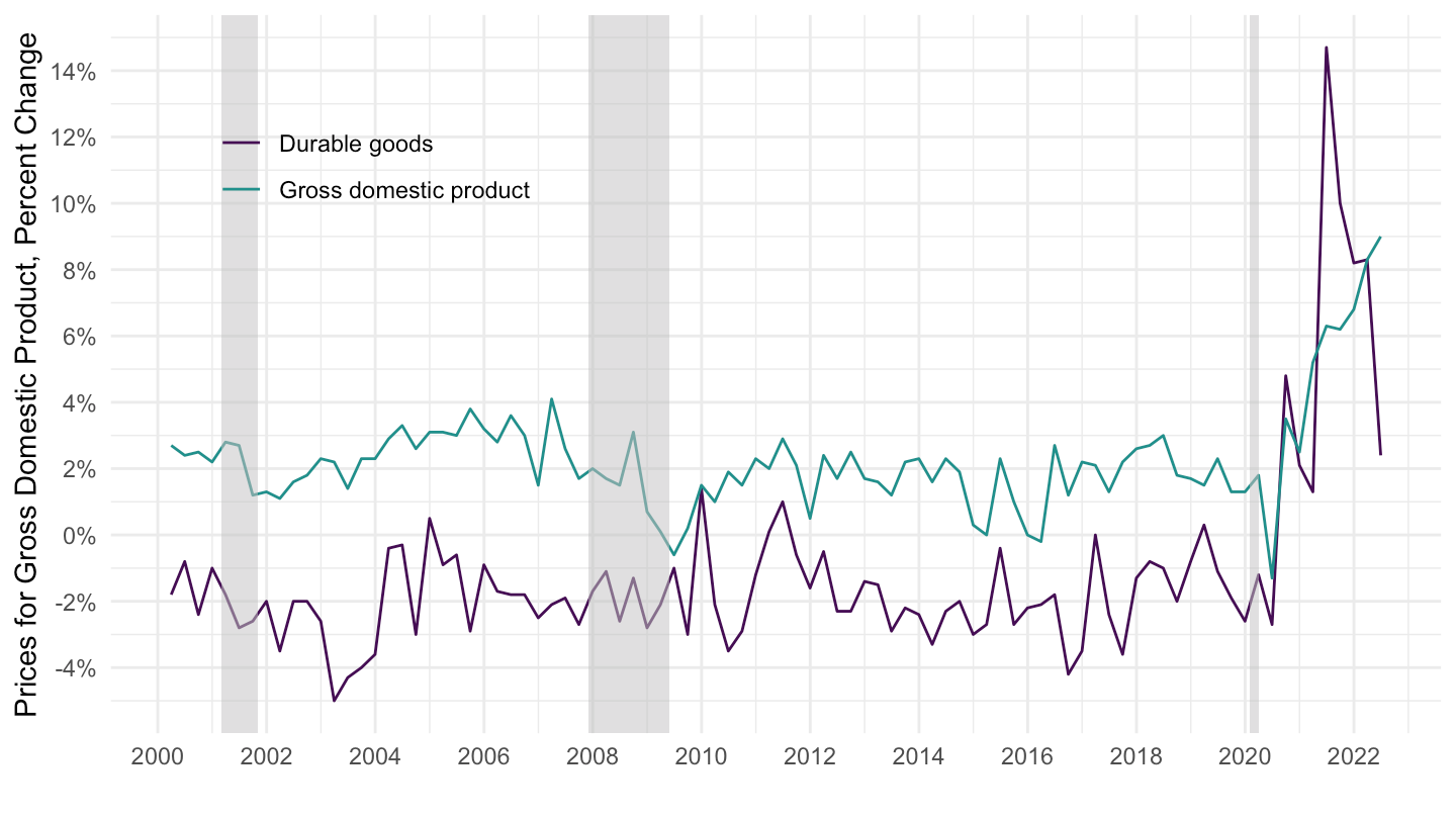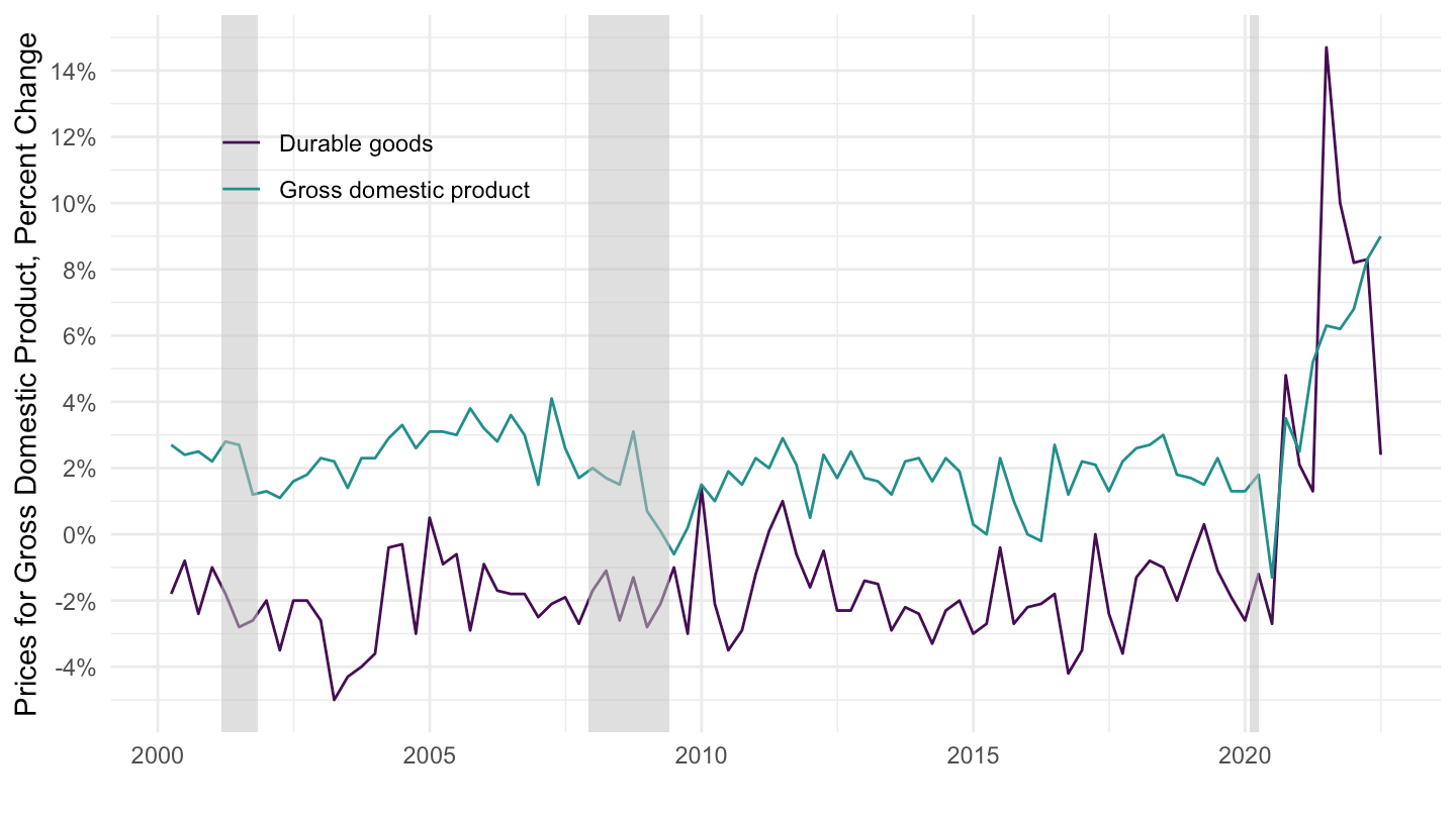 xlab("") + ylab("Prices for Gross Domestic Product, Percent Change")