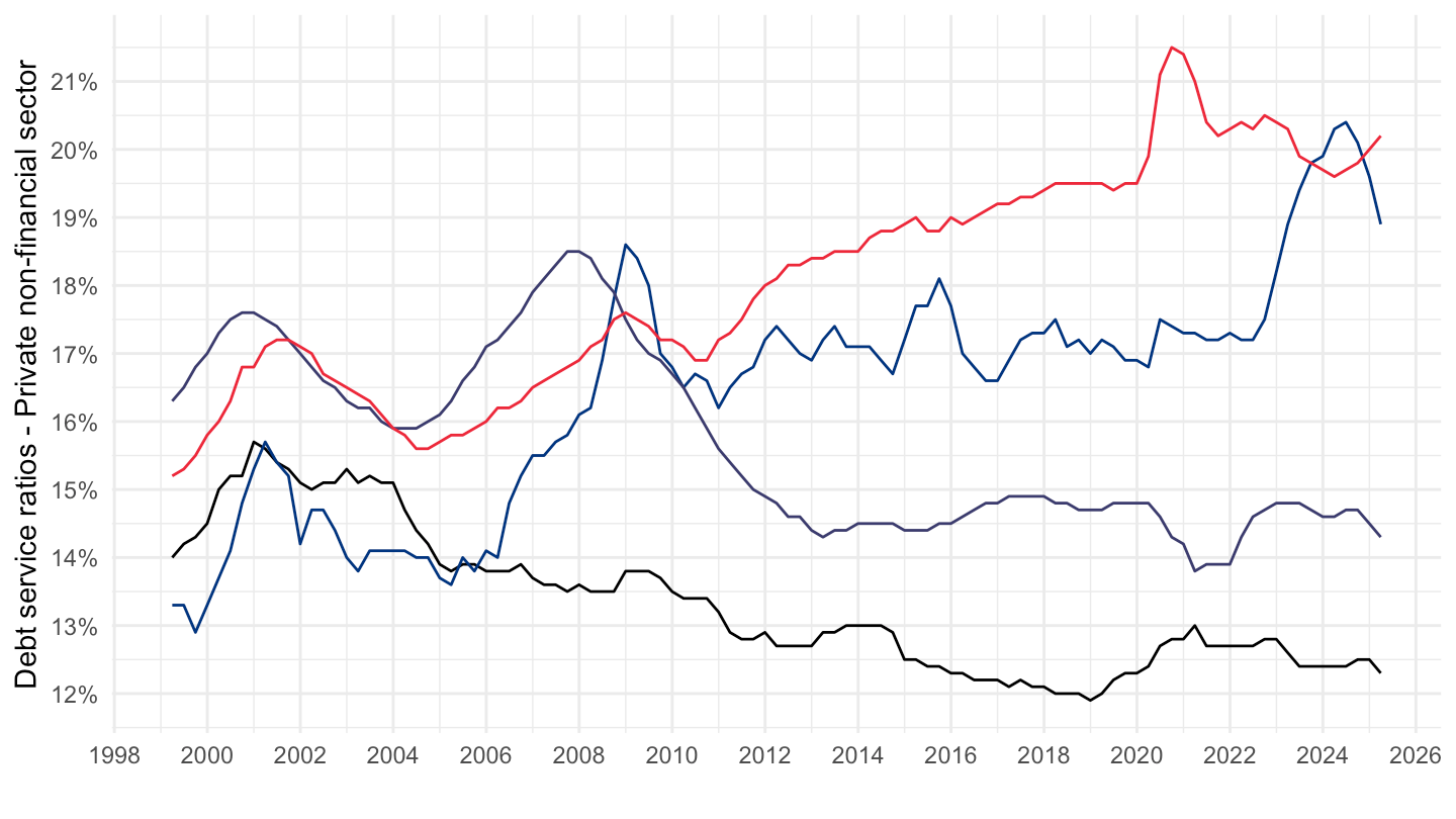 theme_minimal() + xlab("") + ylab("Debt service ratios - Private non-financial sector") +