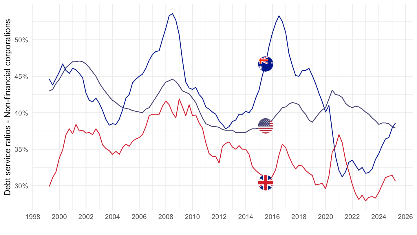 theme_minimal() + xlab("") + ylab("Debt service ratios - Non-financial corporations") +