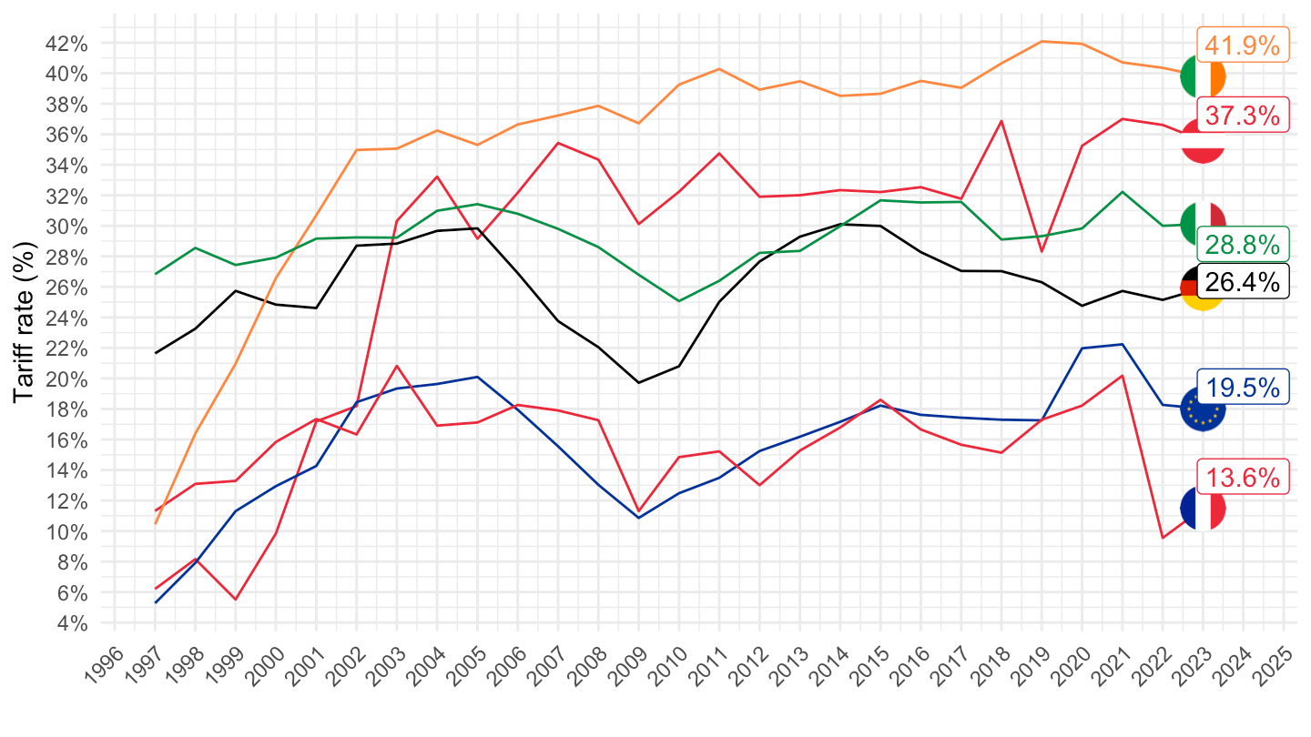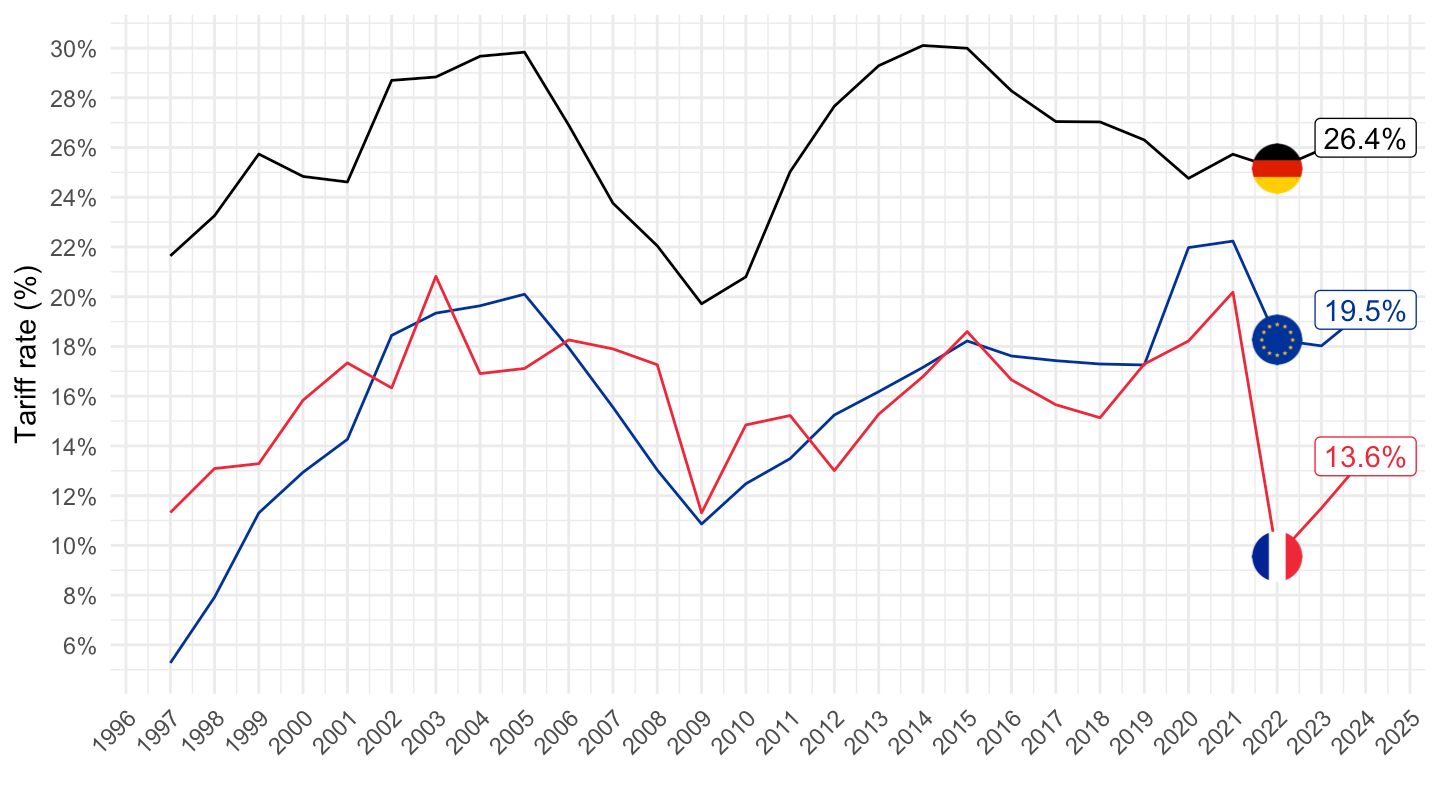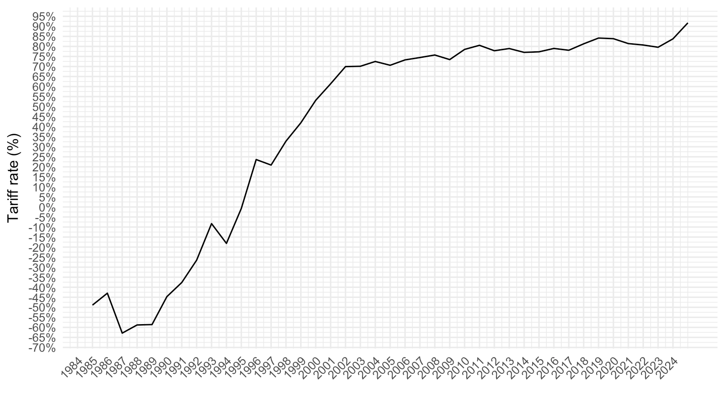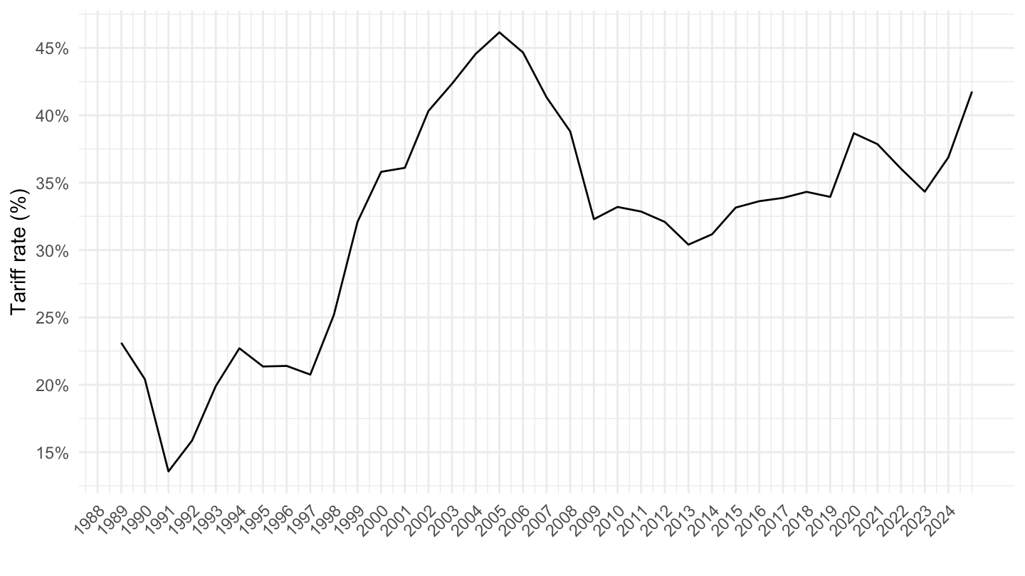 theme_minimal() + xlab("") + ylab("Tariff rate (%)") +