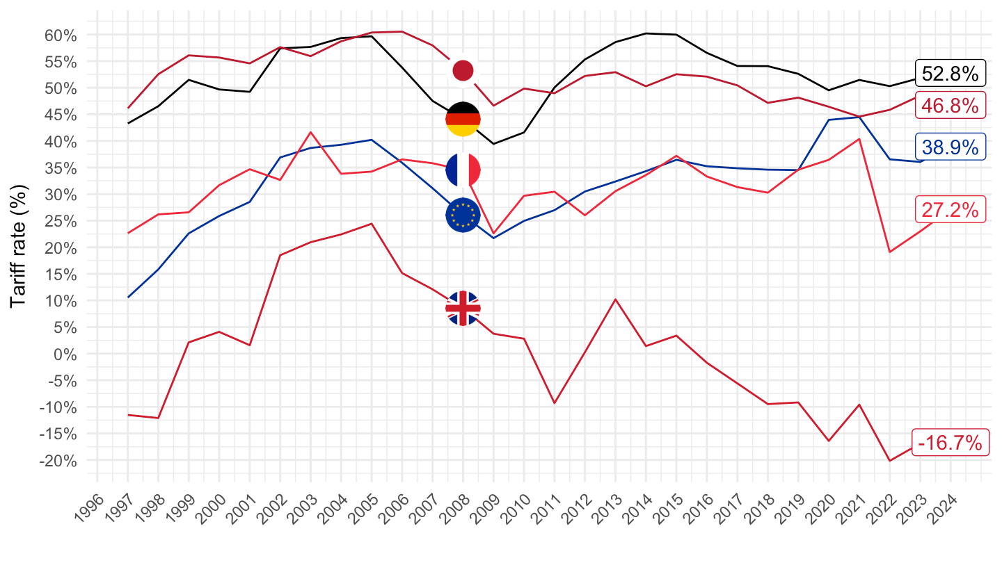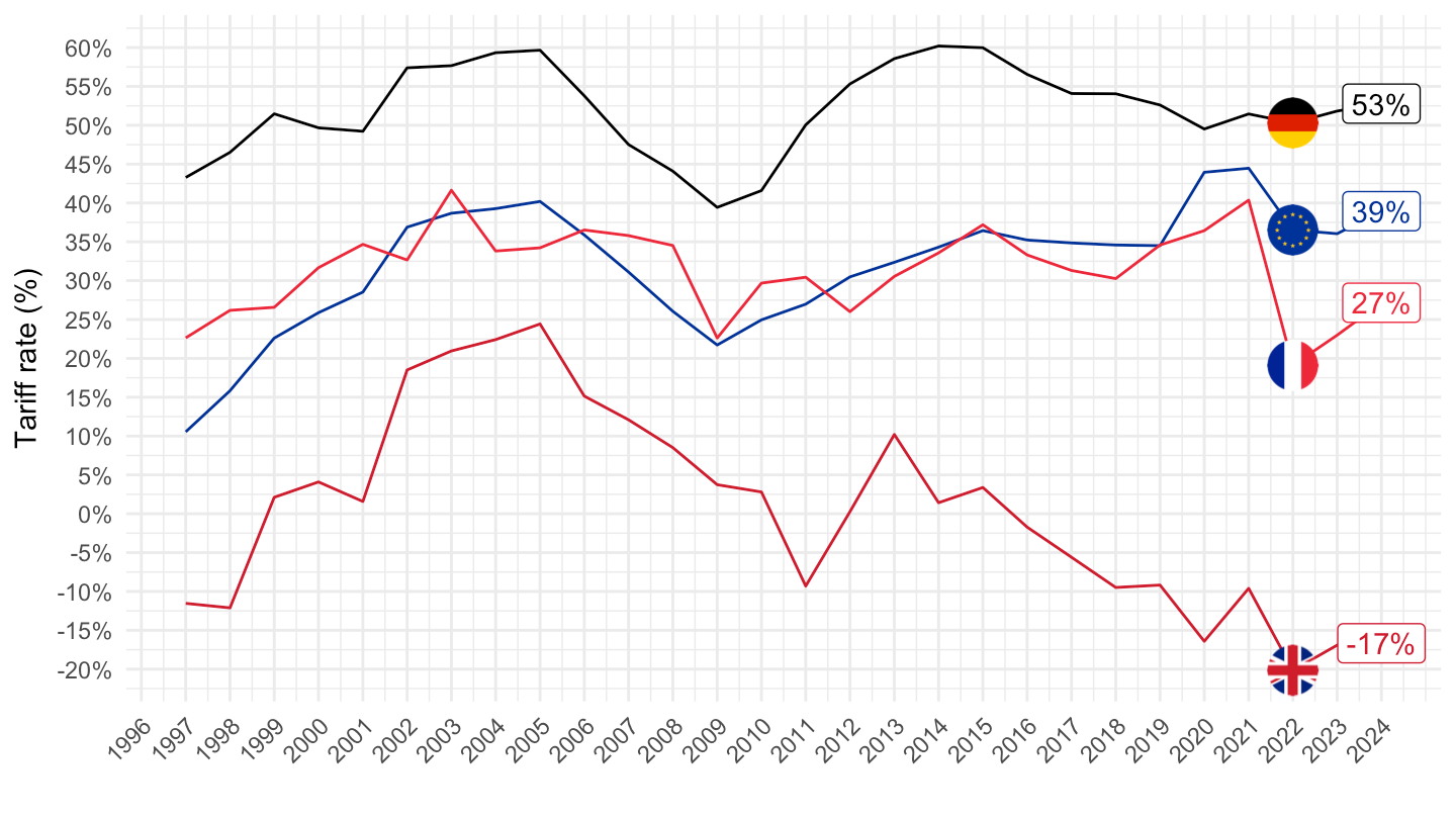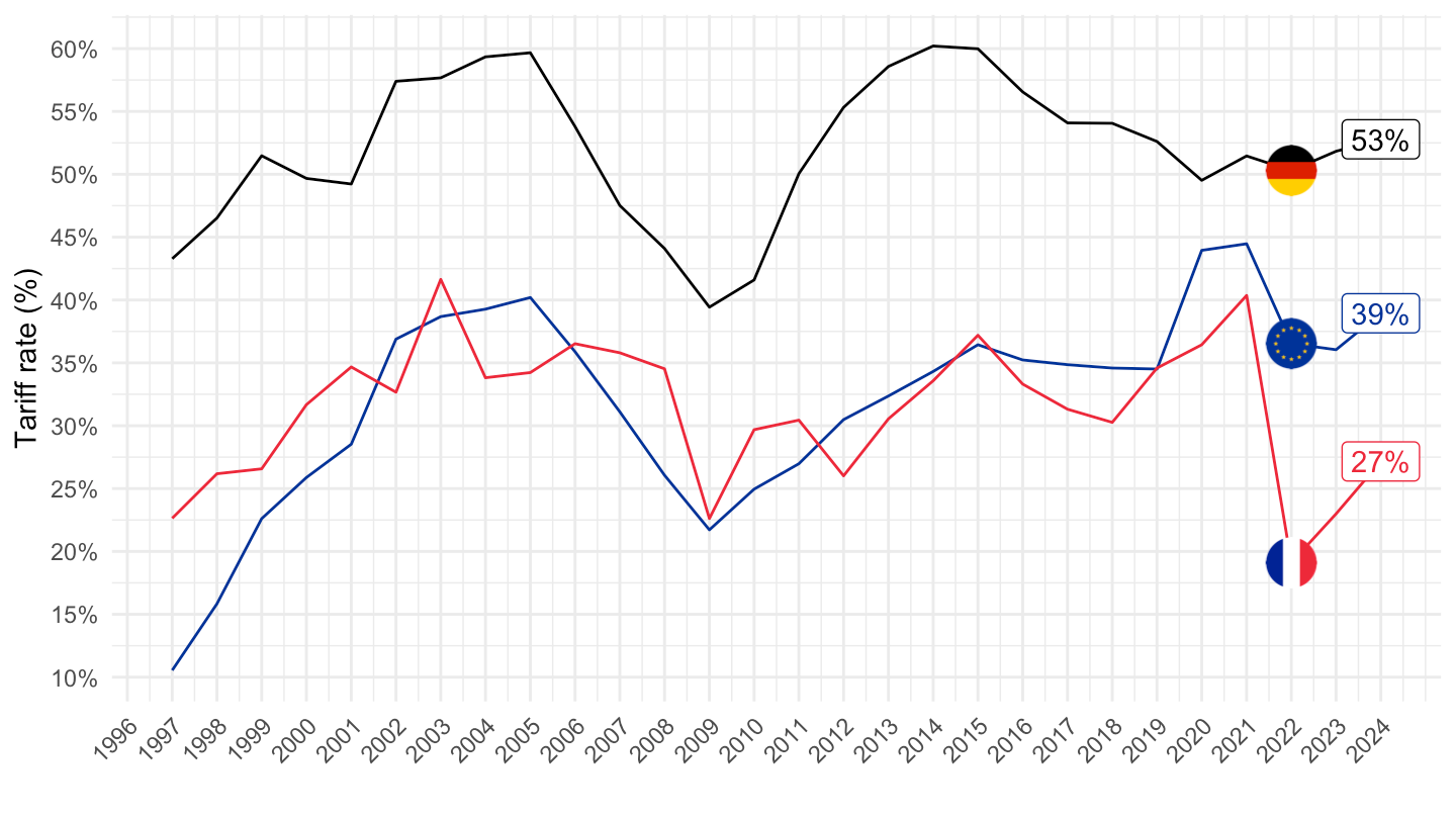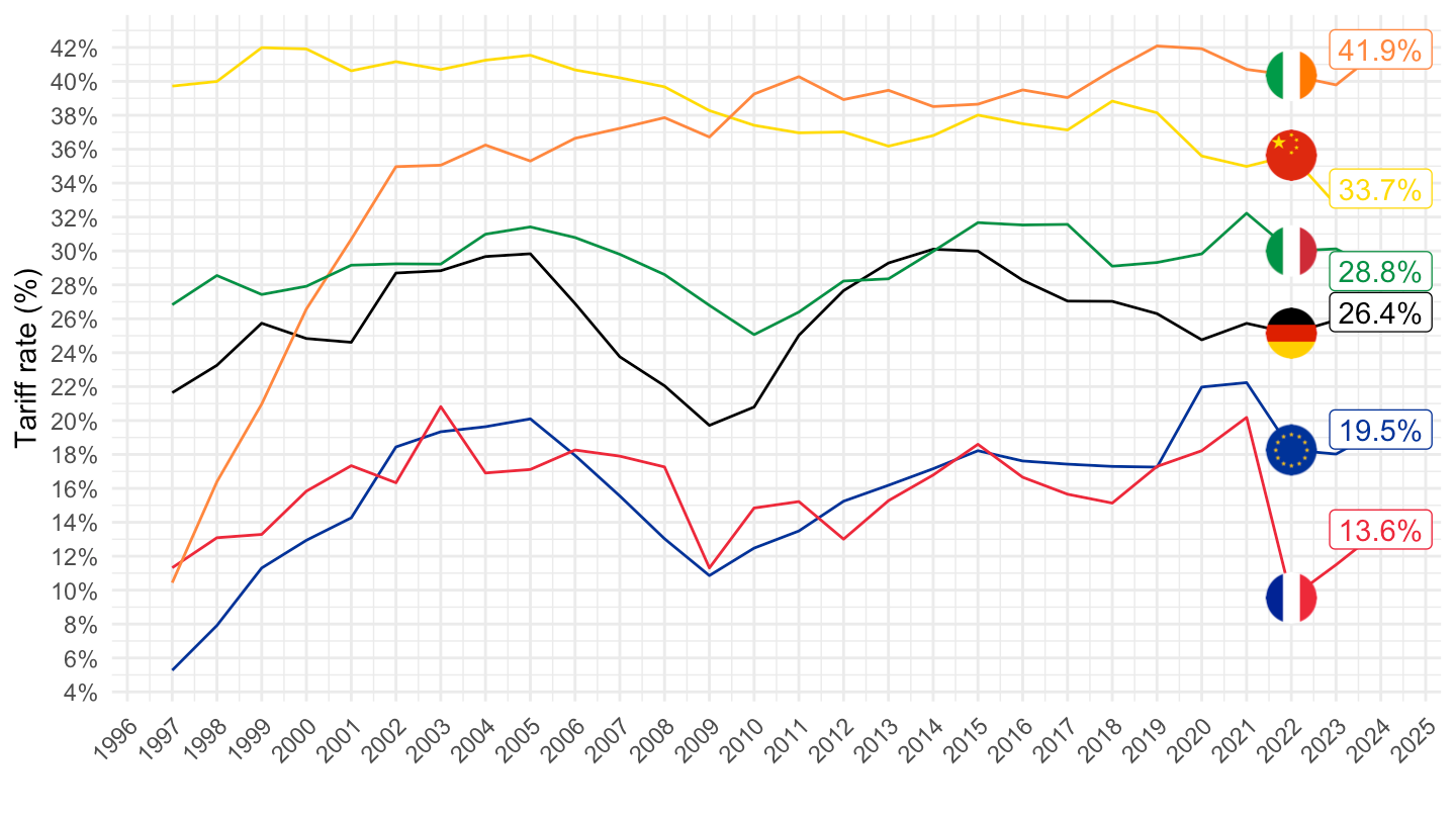 theme_minimal() + xlab("") + ylab("Tariff rate (%)") +