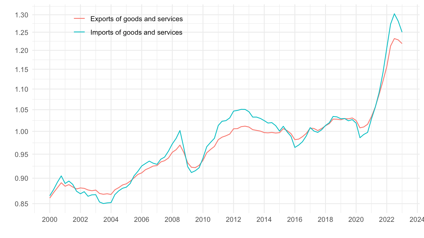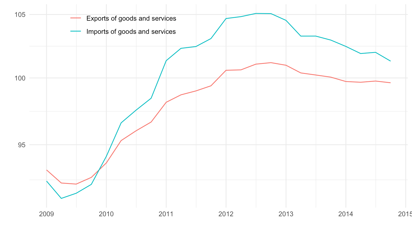 mutate(OBS_VALUE = lead(log(OBS_VALUE), 4) - lag(log(OBS_VALUE), 4)) %>%