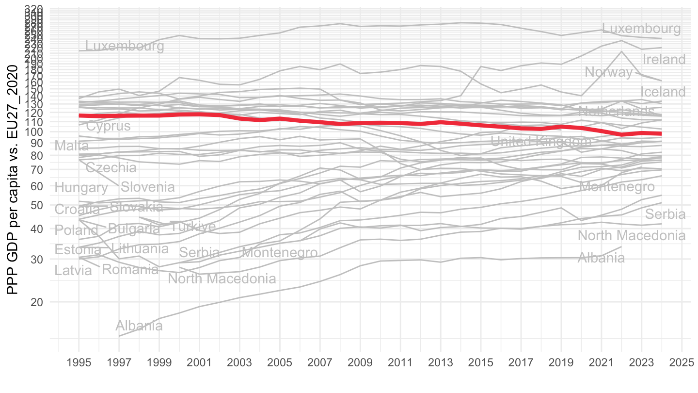 xlab("") + ylab("PPP GDP per capita vs. EU27_2020") + add_8flags +