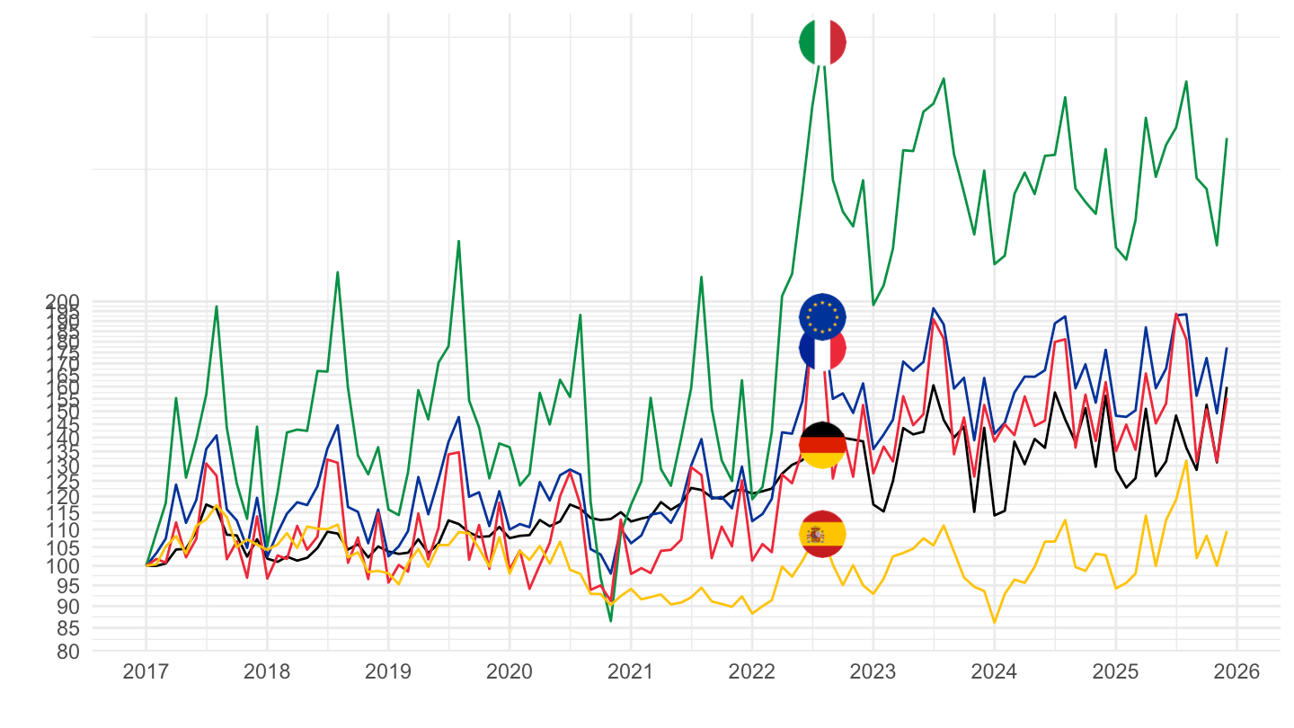 mutate(values = 100*values[time == "2023M10"]/values[time == "2021M10"]) %>%