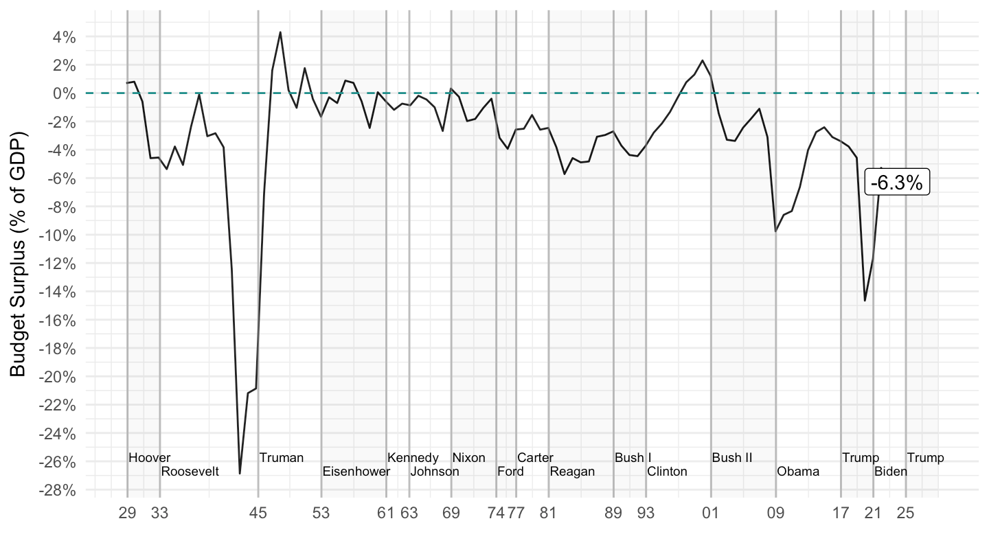 xlab("") + ylab("Budget Surplus (% of GDP)") +
