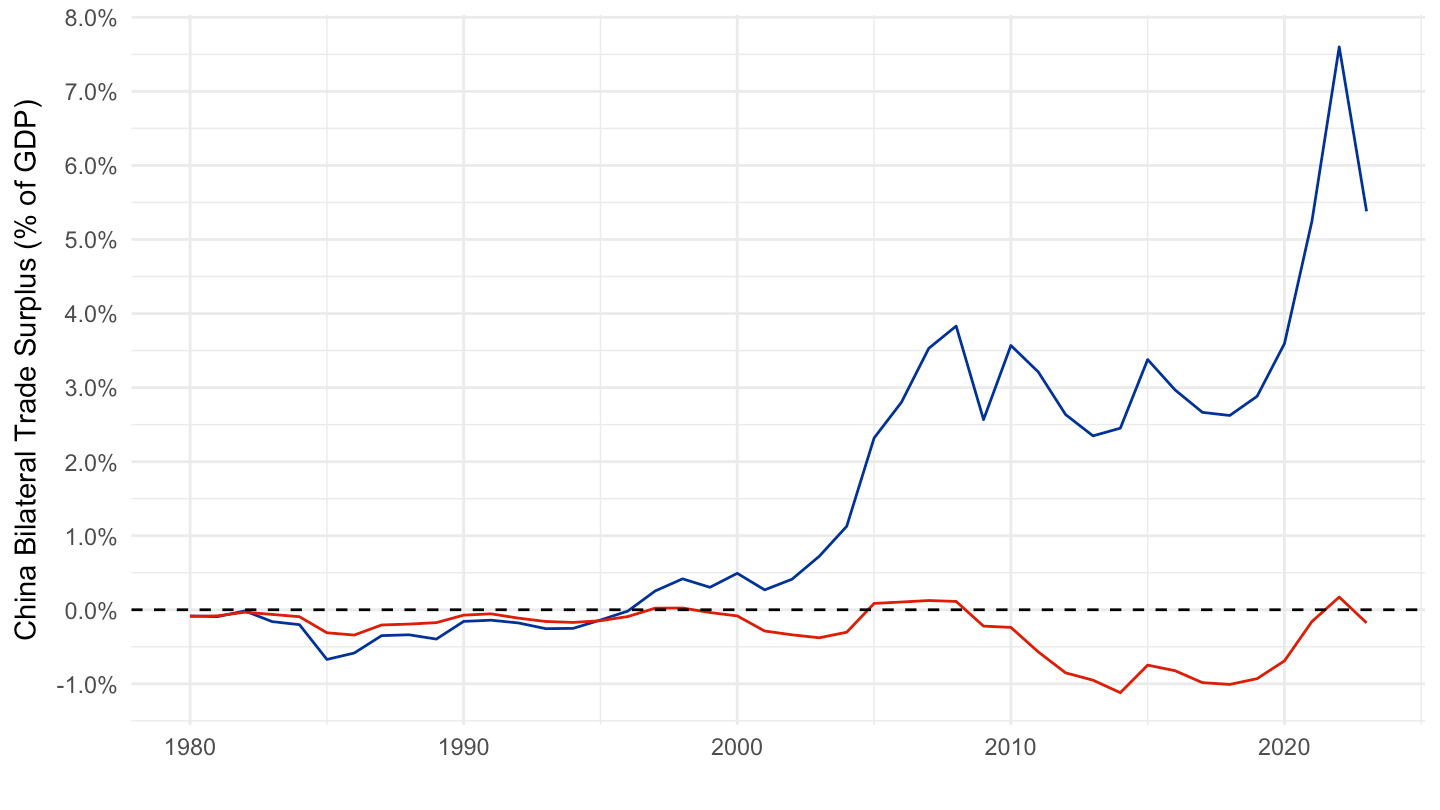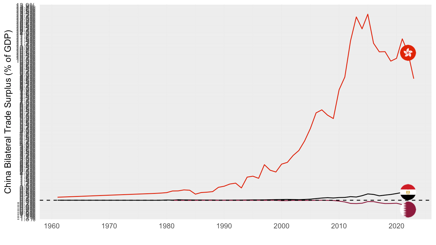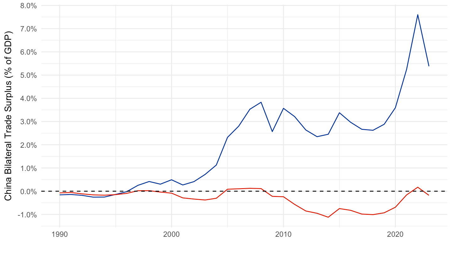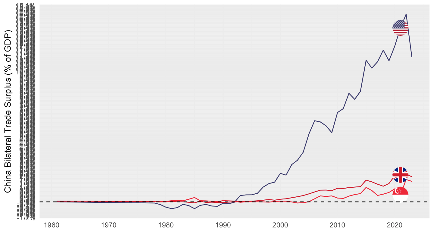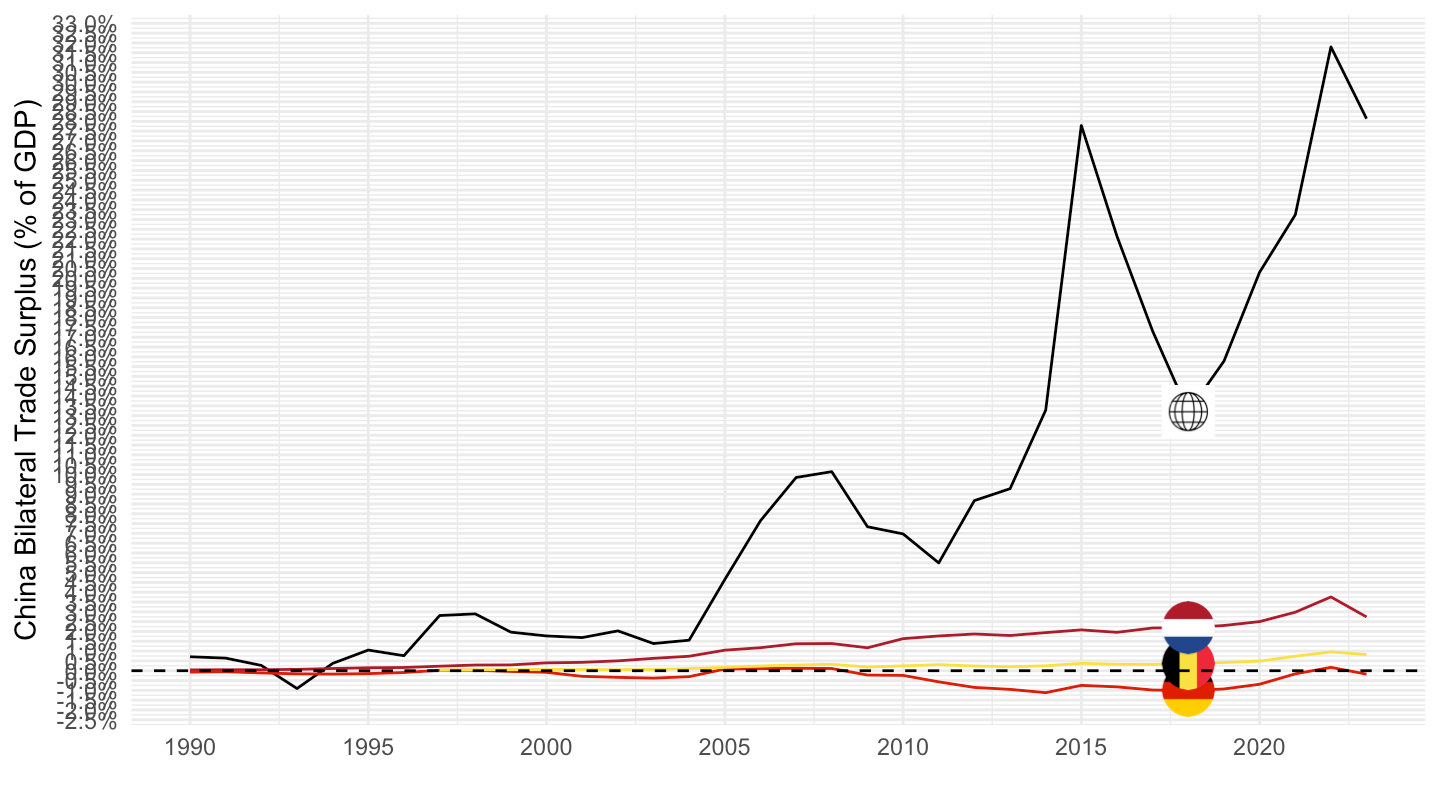 xlab("") + ylab("China Bilateral Trade Surplus (% of GDP)") +