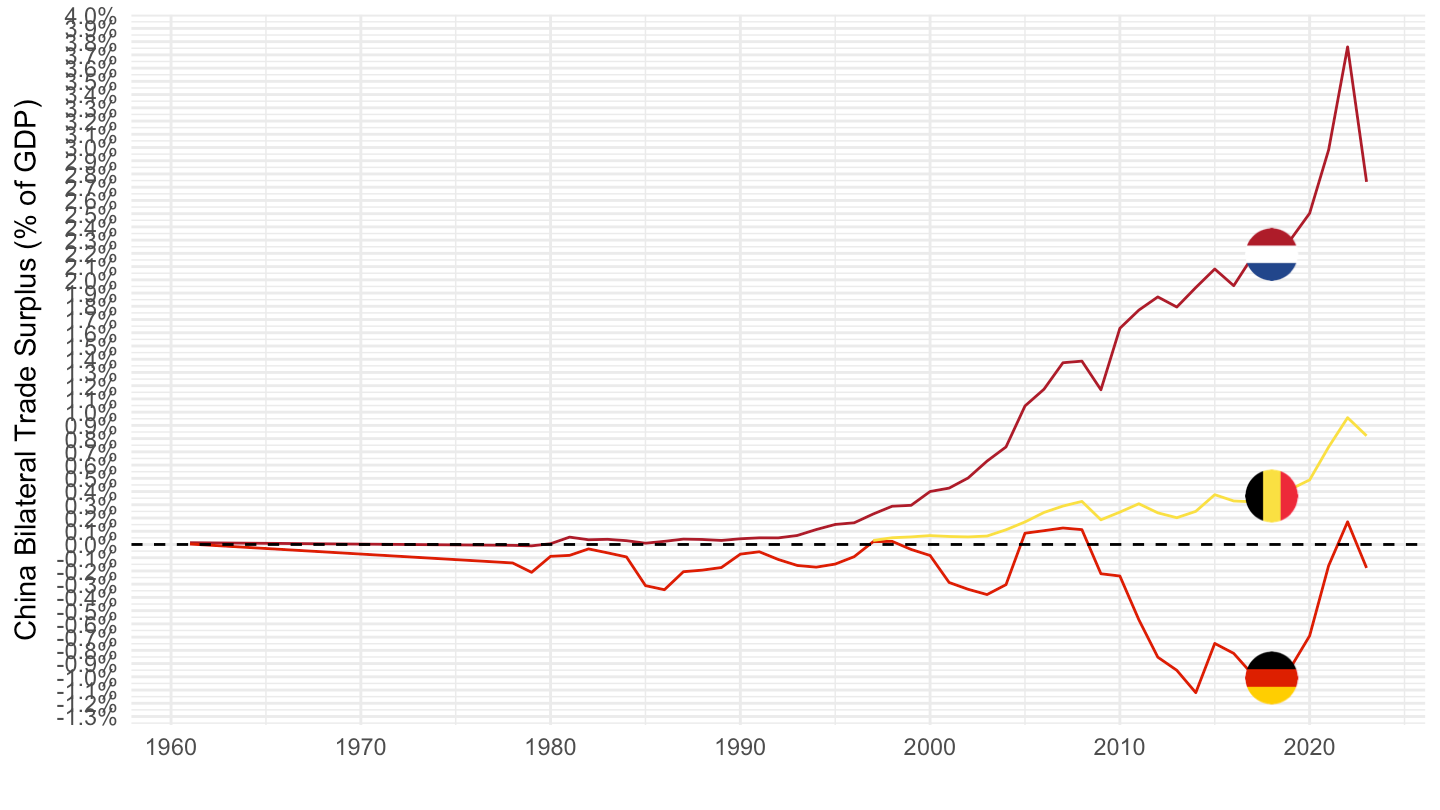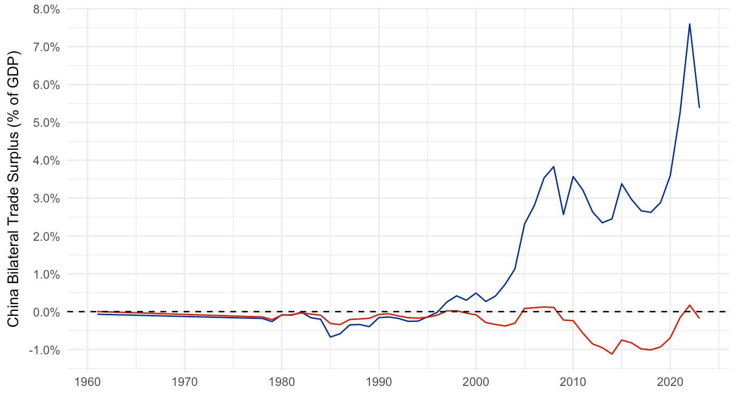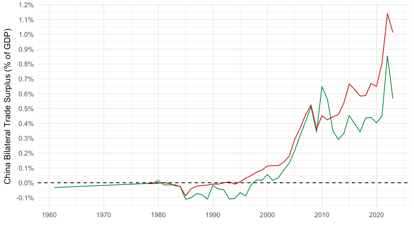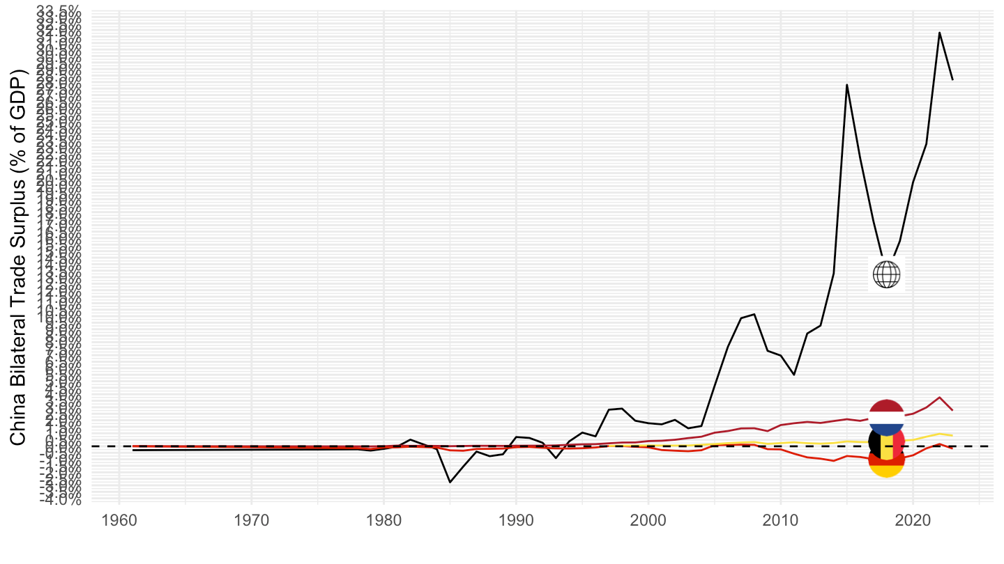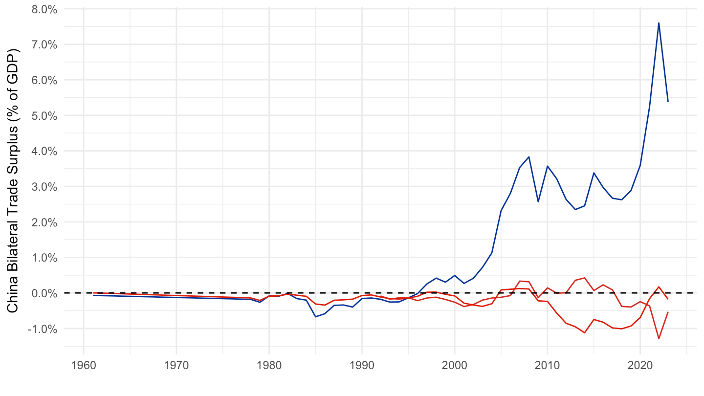 xlab("") + ylab("China Bilateral Trade Surplus (% of GDP)") +