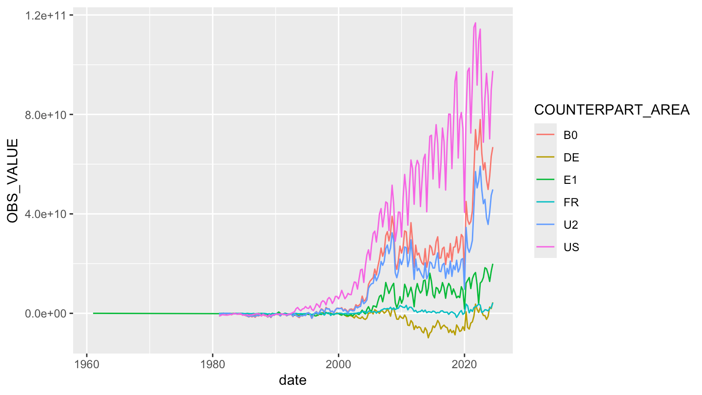 DOT_CN filter(COUNTERPART_AREA %in% c("DE", "FR", "U2", "US", "E1", "B0"),