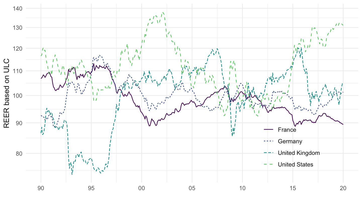 theme_minimal() + xlab("") + ylab("REER based on ULC") +