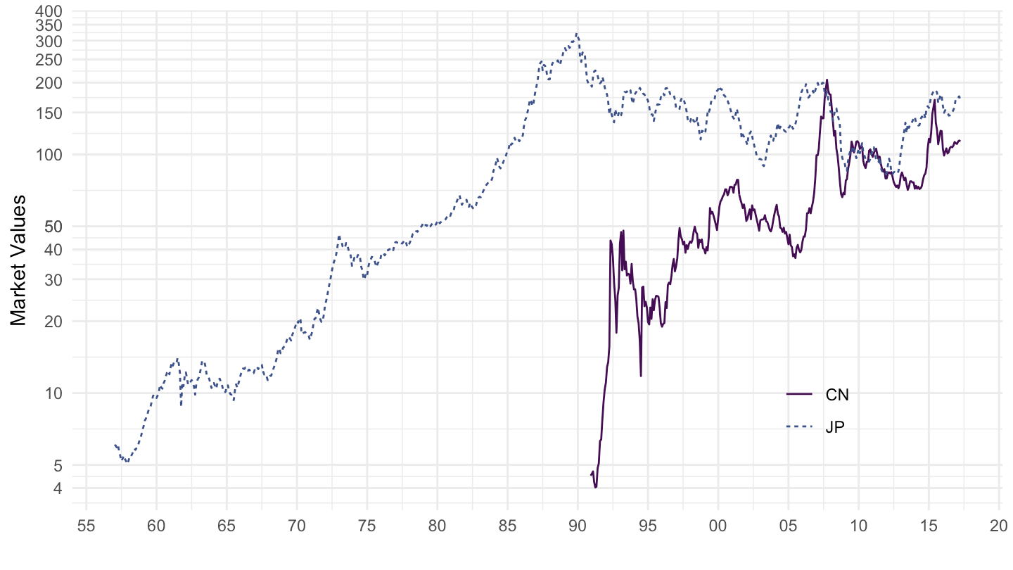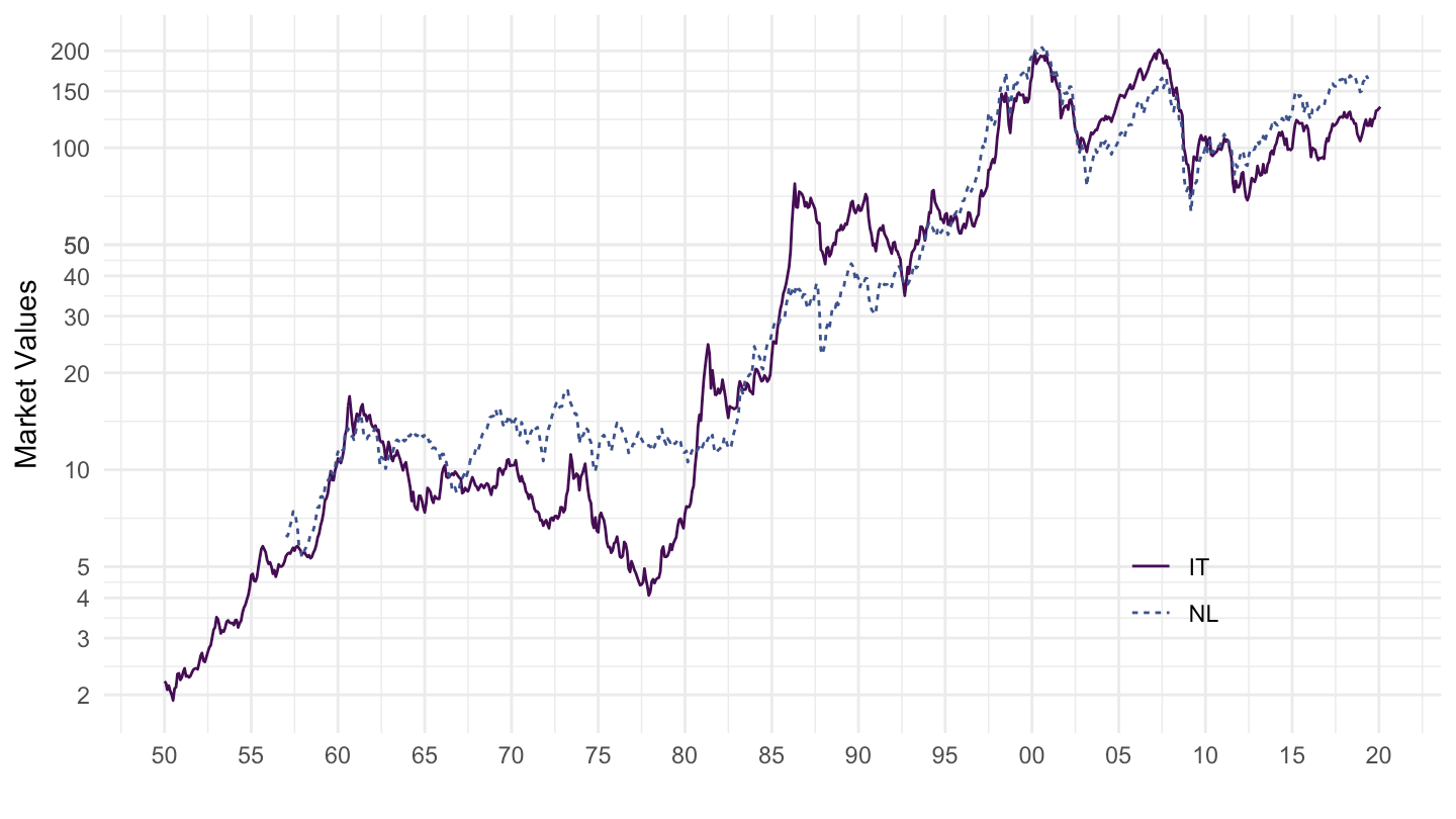 theme_minimal() + xlab("") + ylab("Market Values") +