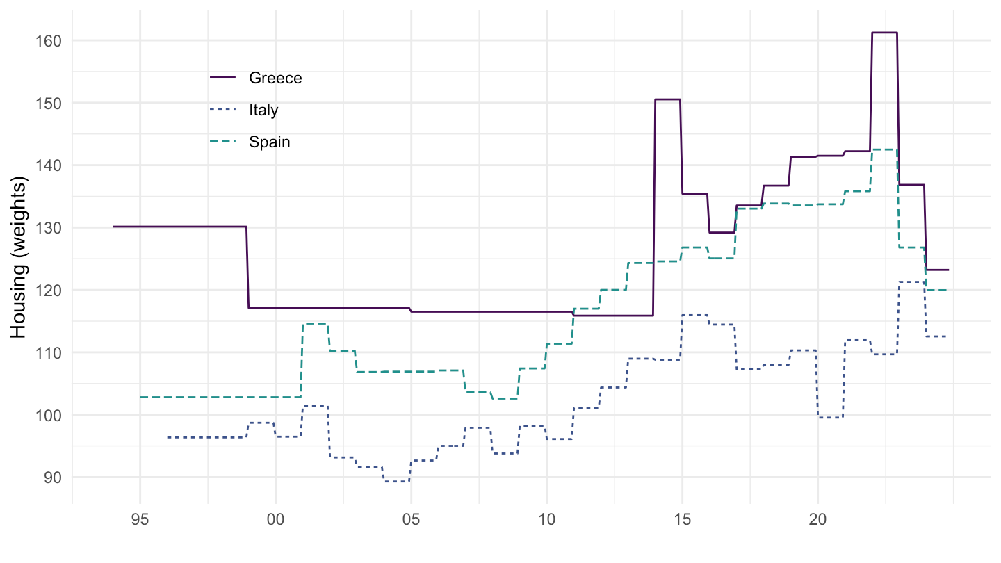 PCPIH_WT filter(REF_AREA %in% c("IT", "ES", "GR"),