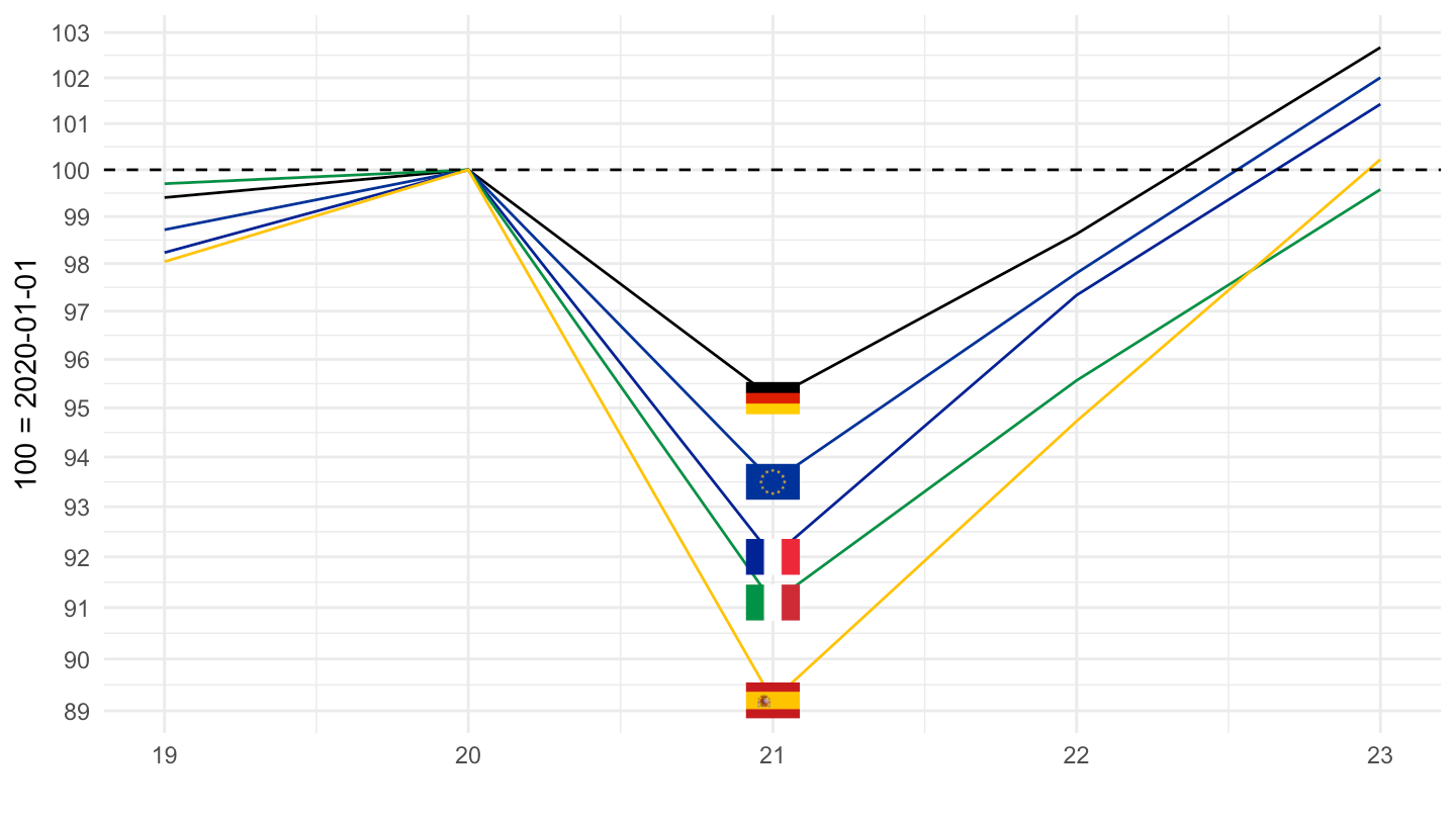 ylab("100 = 2020-01-01") + xlab("") +