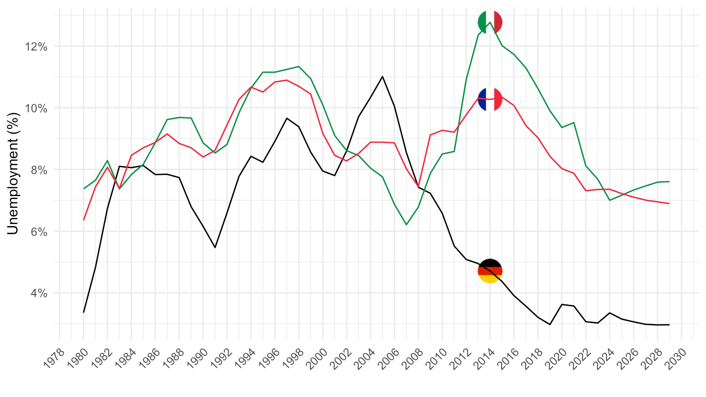 ylab("Unemployment (%)") + xlab("") +