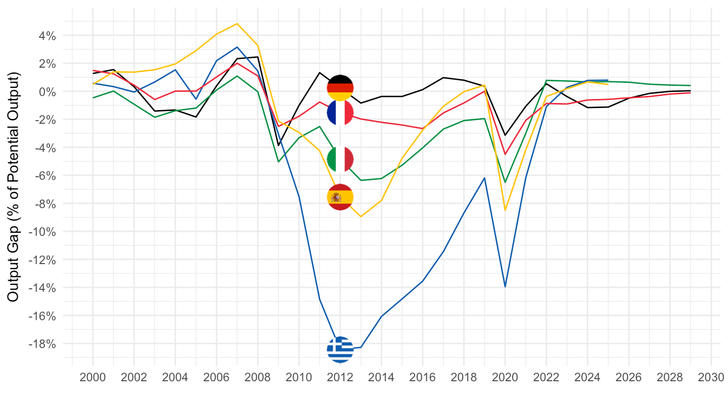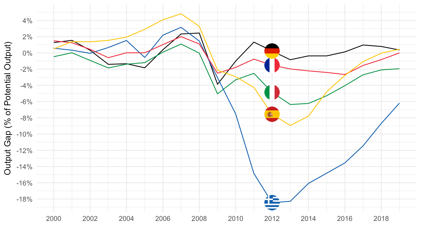 ylab("Output Gap (% of Potential Output)") + xlab("")