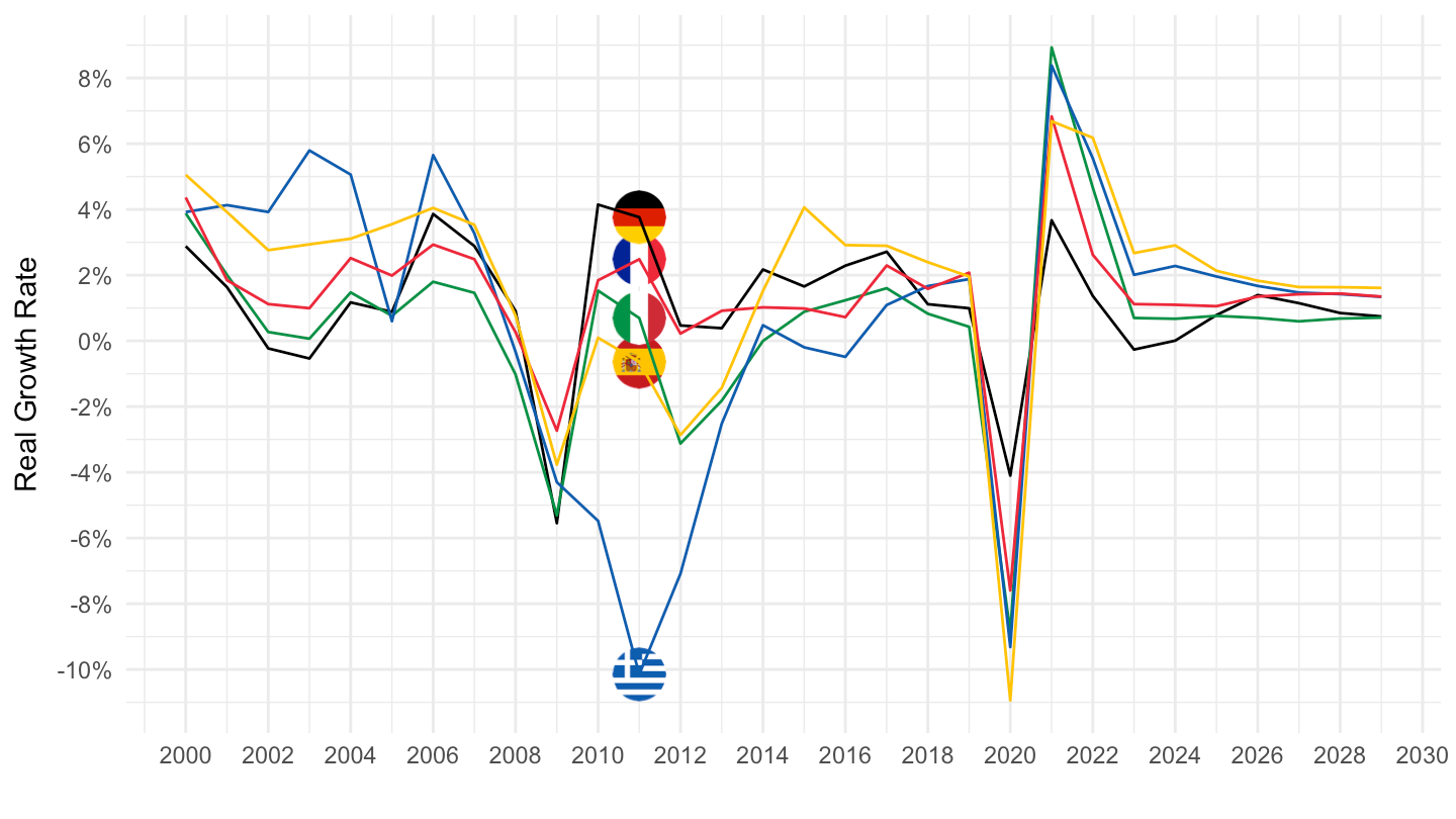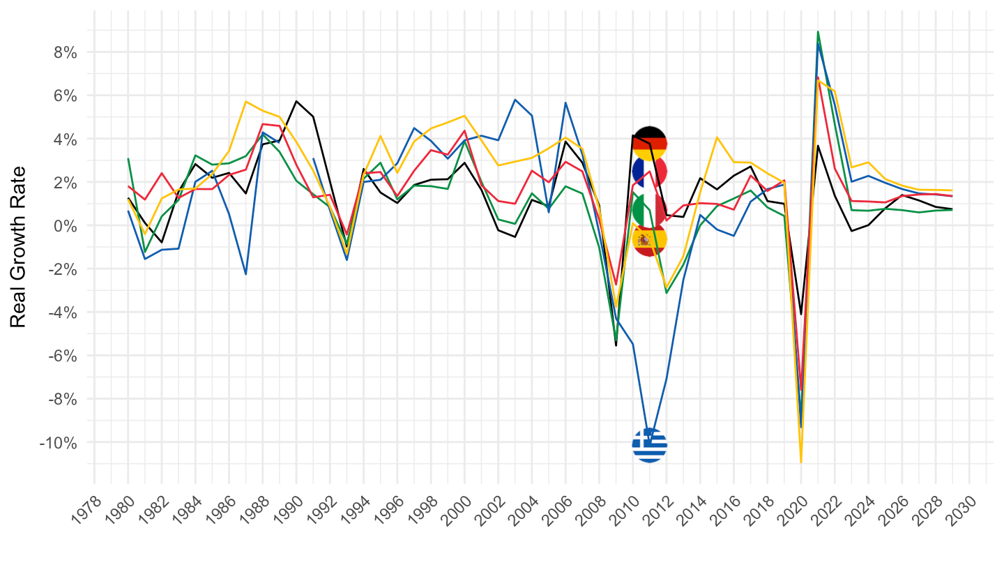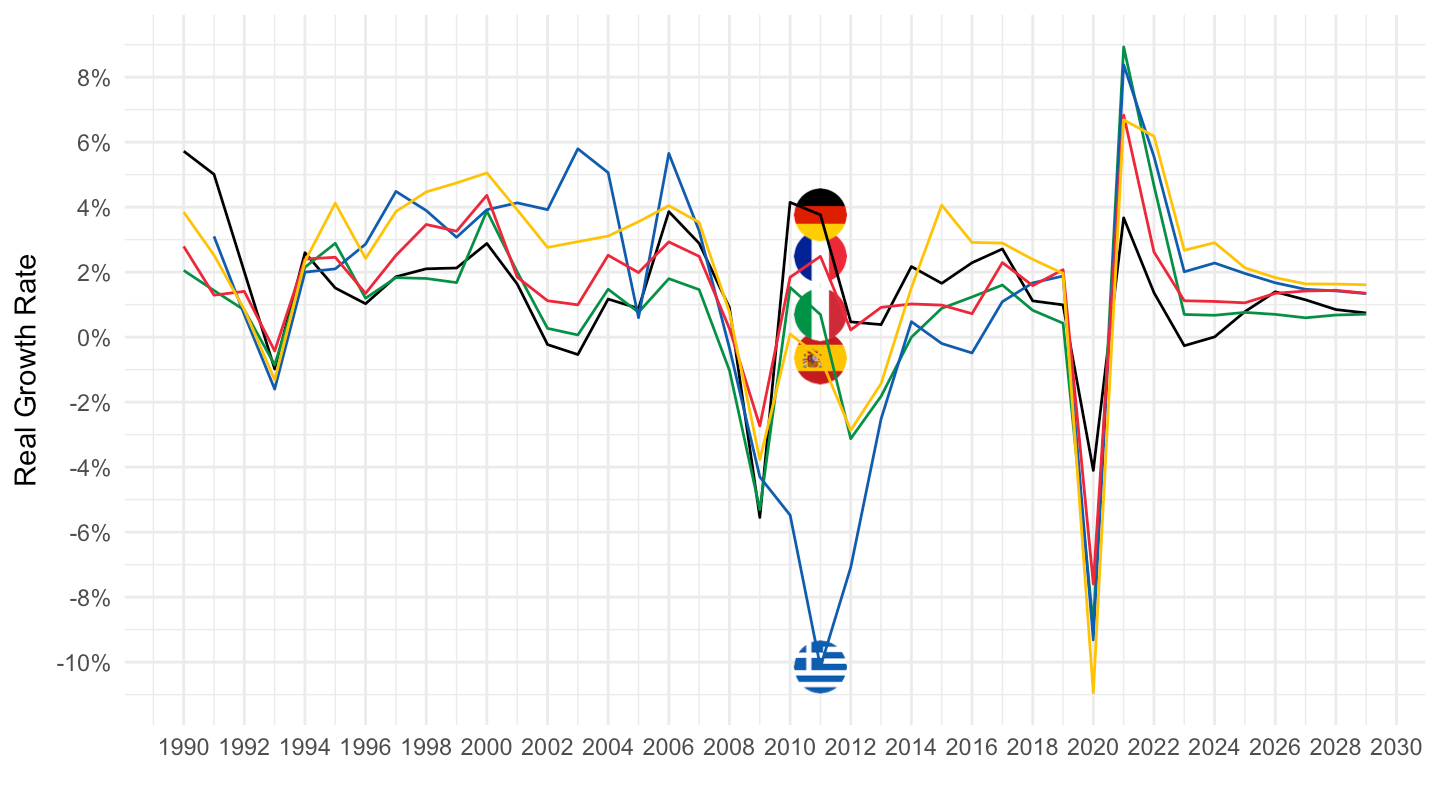 ylab("Real Growth Rate") + xlab("") +