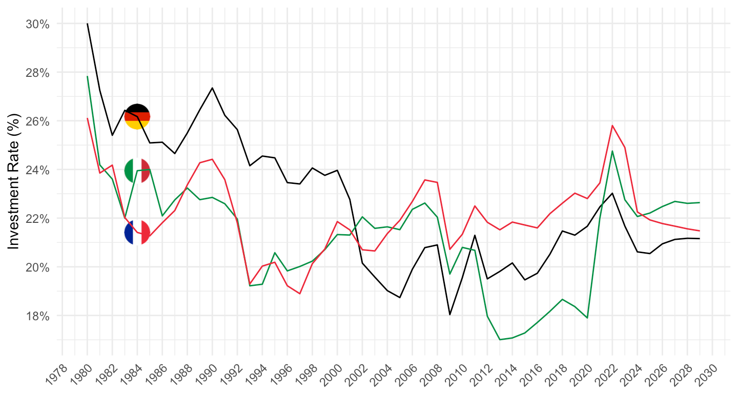 ylab("Investment Rate (%)") + xlab("") +