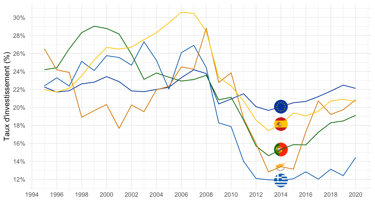 ylab("Taux d'investissement (%)") + xlab("") +