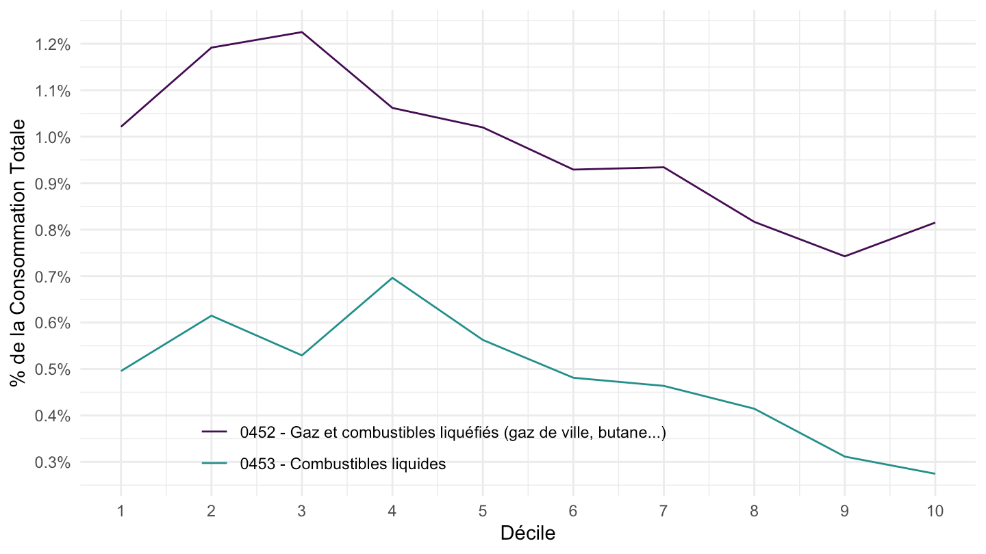 theme_minimal() + xlab("Décile") + ylab("% de la Consommation Totale") +