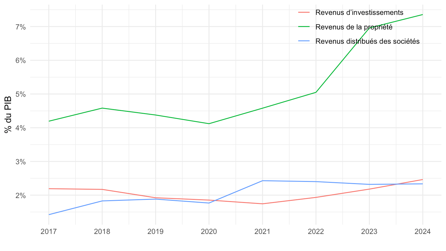 theme_minimal() + xlab("") + ylab("Revenus Distributés des Sociétés - Dividendes (% du PIB)") +