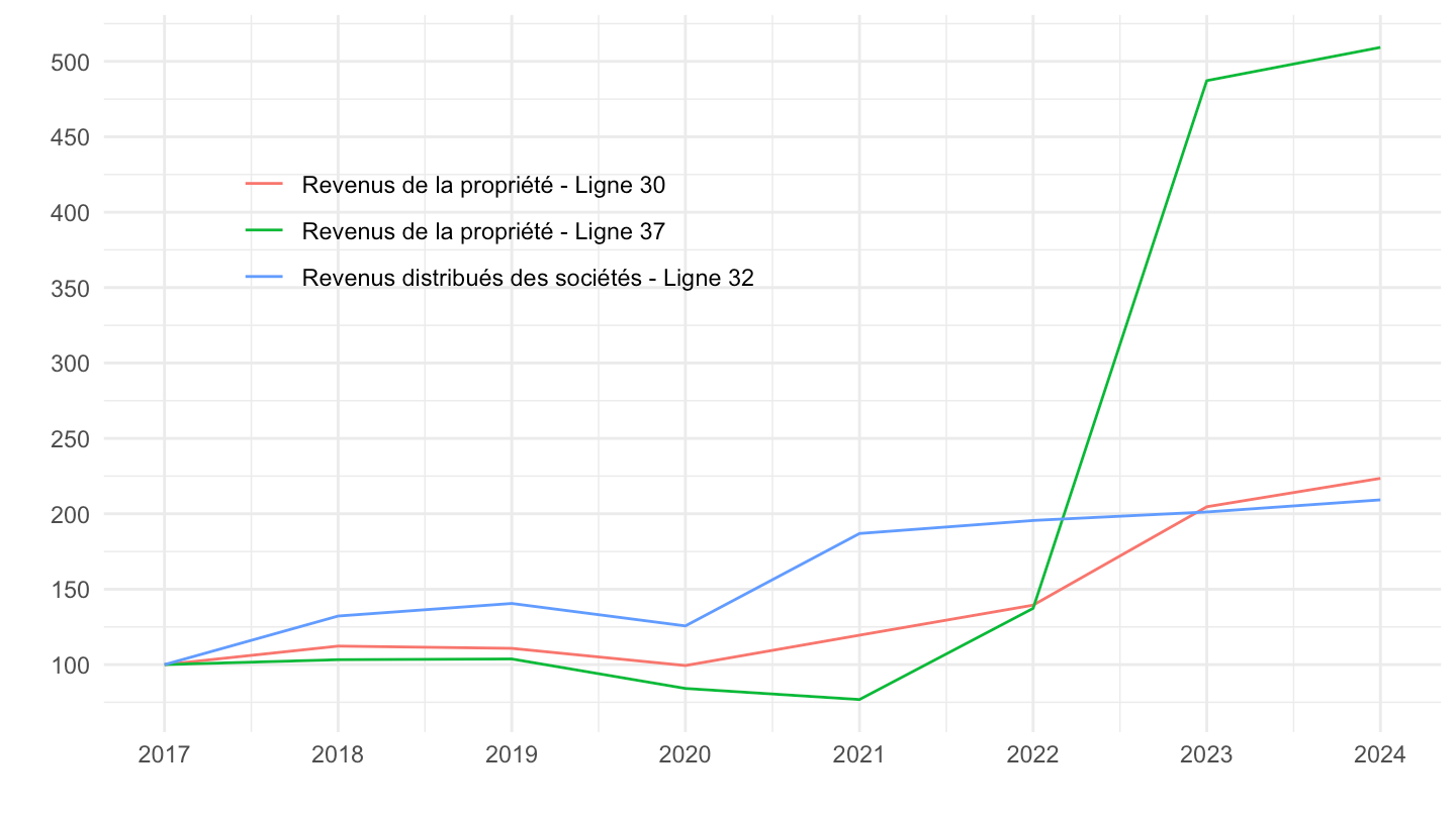 theme_minimal() + xlab("") + ylab("Revenus Distributés des Sociétés - Dividendes (Milliards)") +