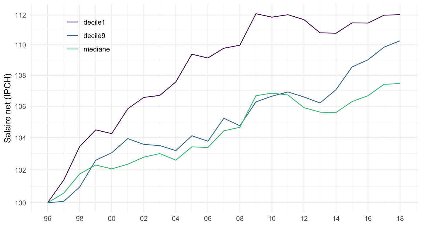 ggplot() + ylab("Salaire net (IPCH)") + xlab("") + theme_minimal() +