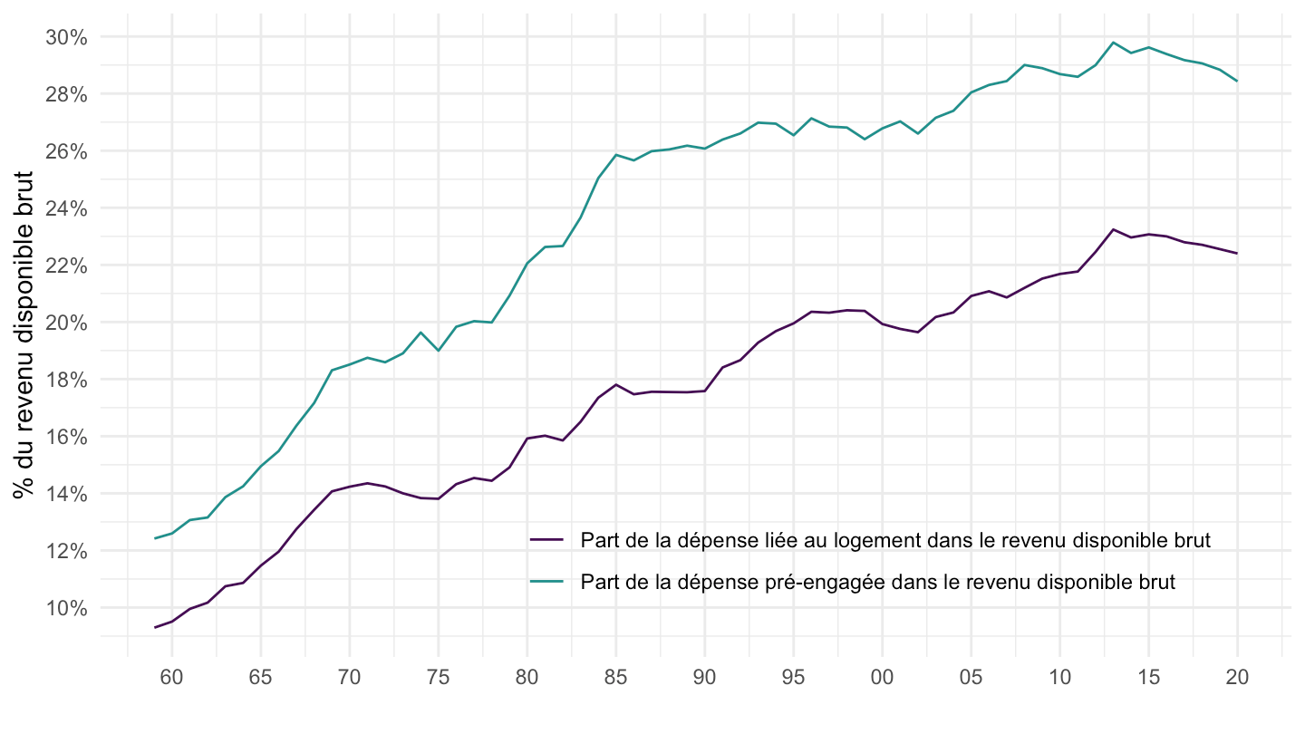 ggplot(.) + theme_minimal() + xlab("") + ylab("% du revenu disponible brut") +