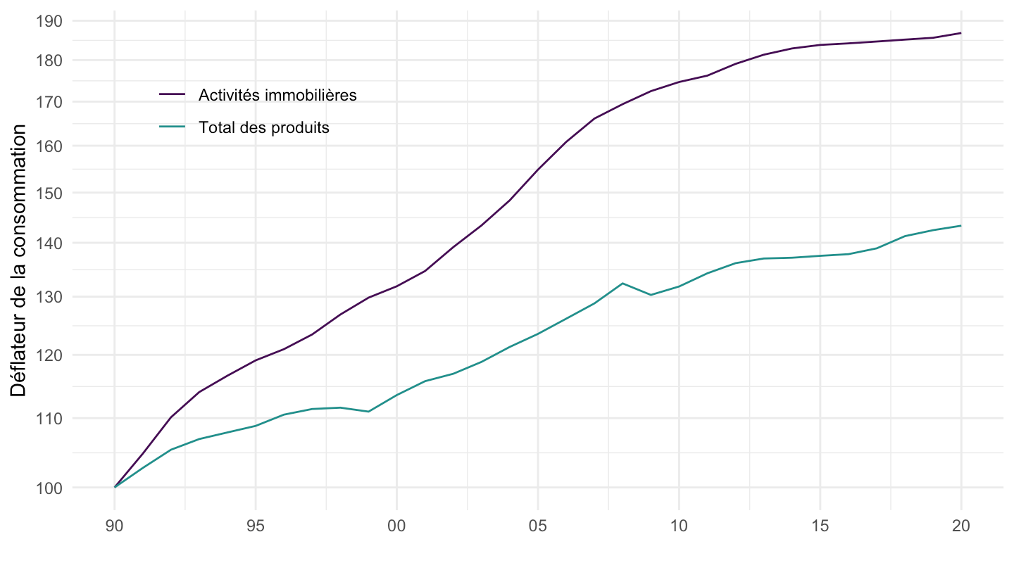 ggplot(.) + theme_minimal() + ylab("Déflateur de la consommation") + xlab("") +