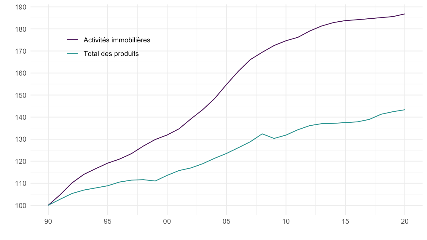 mutate(value = 100*value/value[date == as.Date("1990-01-01")]) %>%