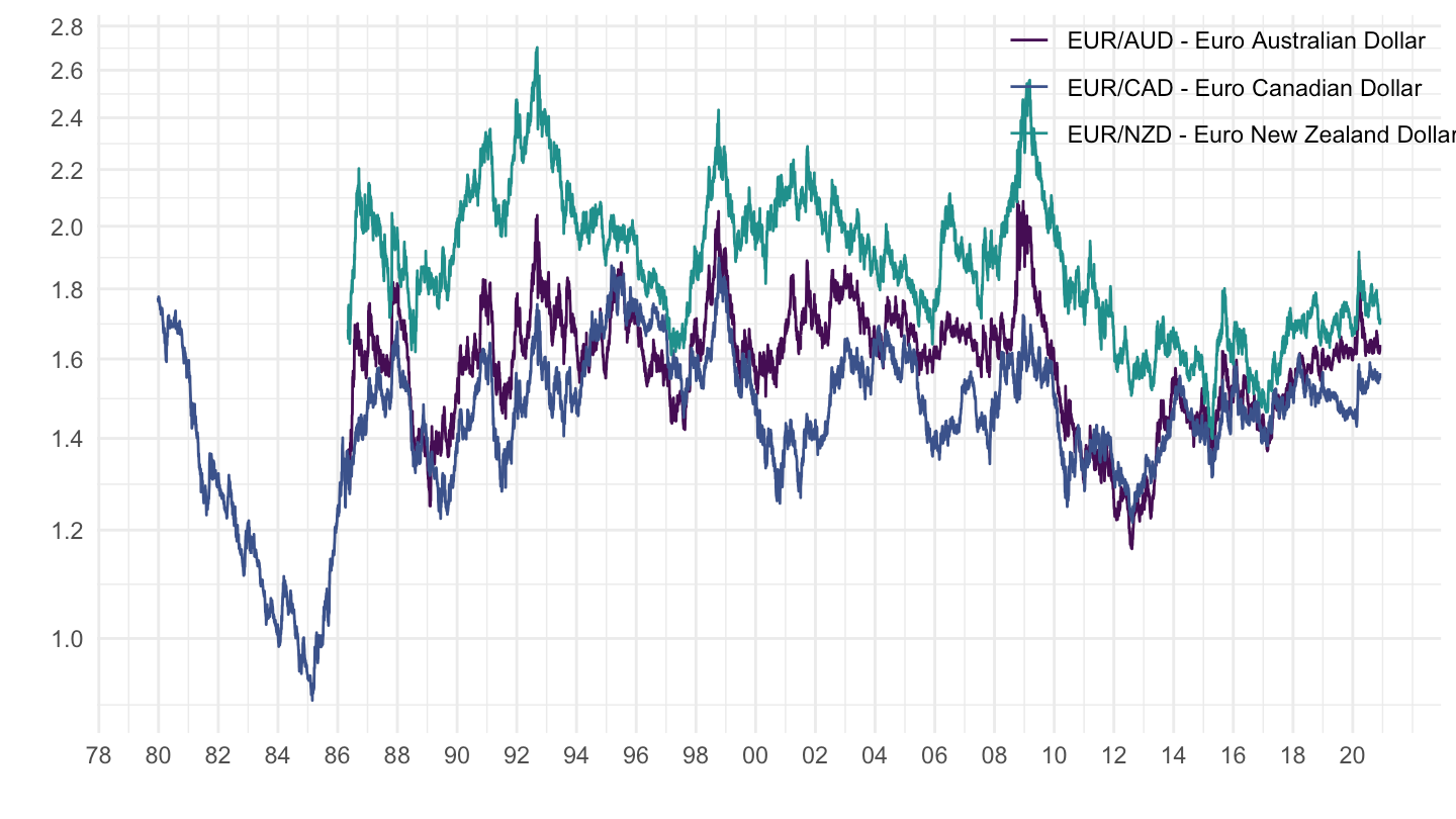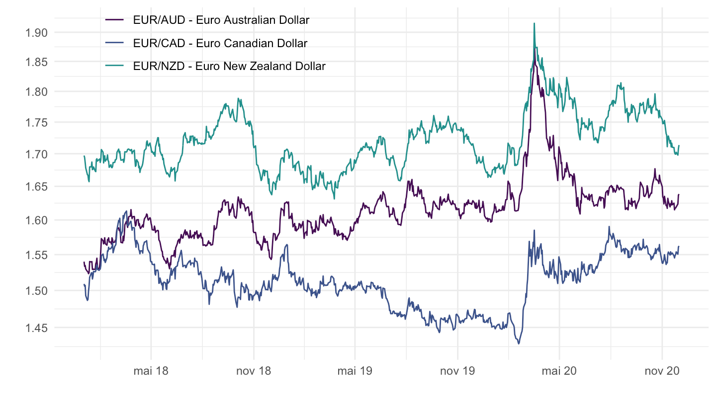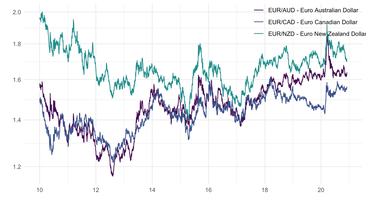 currency_crosses_EUR filter(Currency %in% c("AUD", "NZD", "CAD")) %>%
