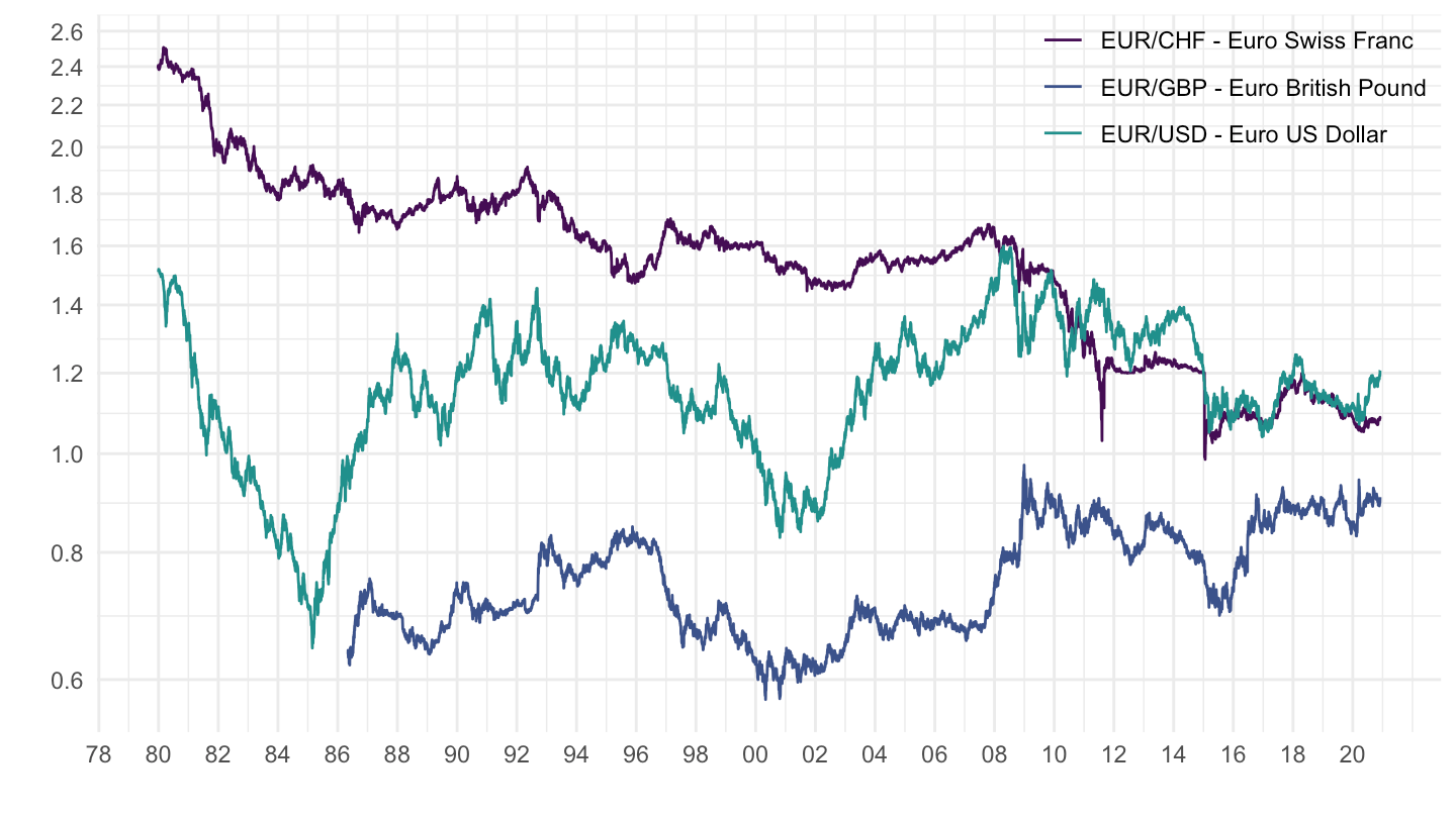 currency_crosses_EUR filter(Currency %in% c("USD", "CHF", "GBP")) %>%