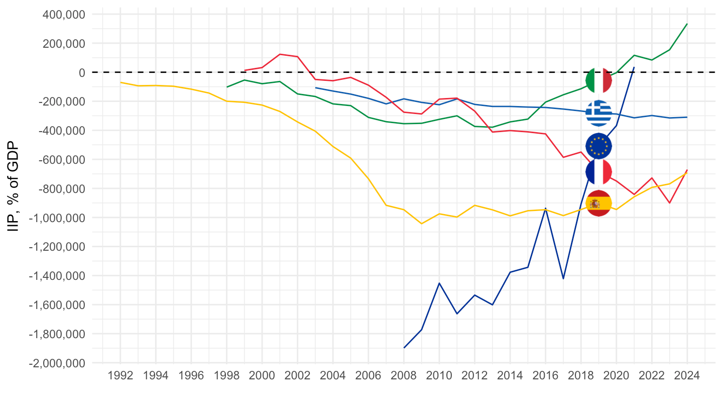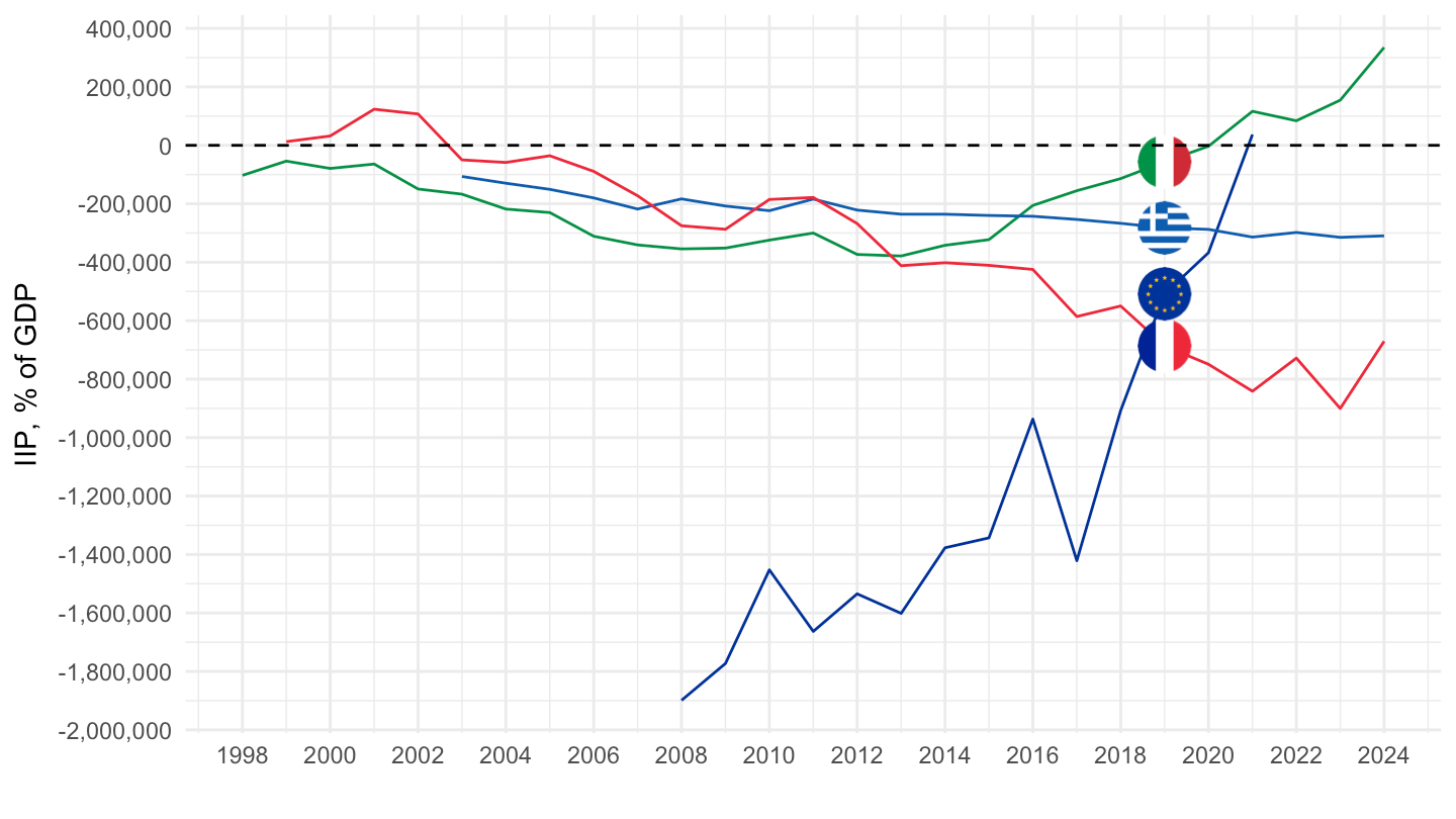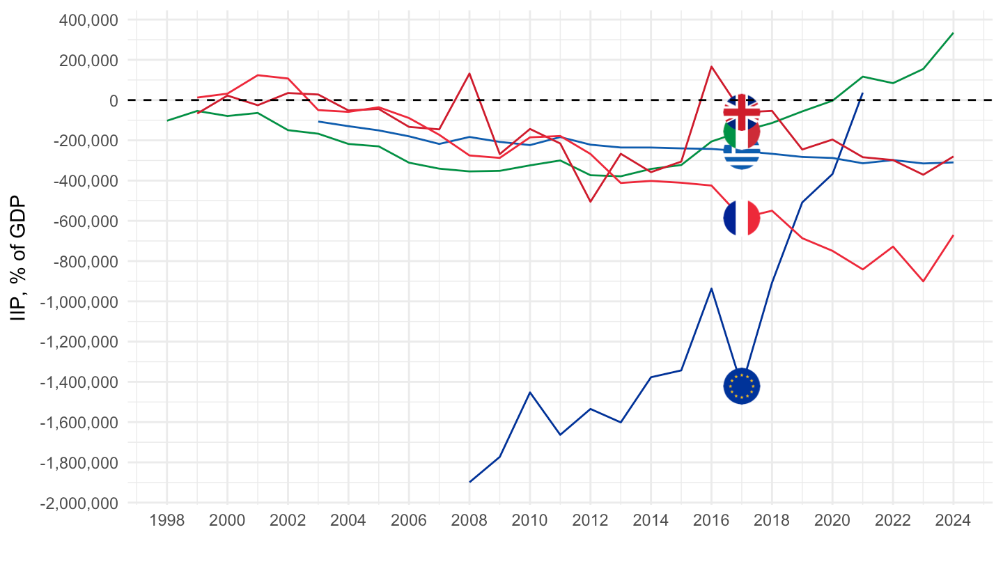 theme_minimal() + xlab("") + ylab("IIP, % of GDP") +