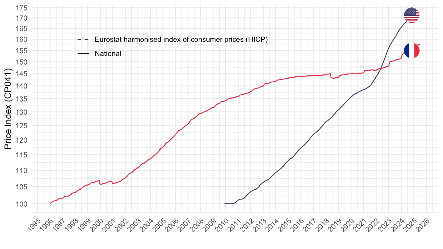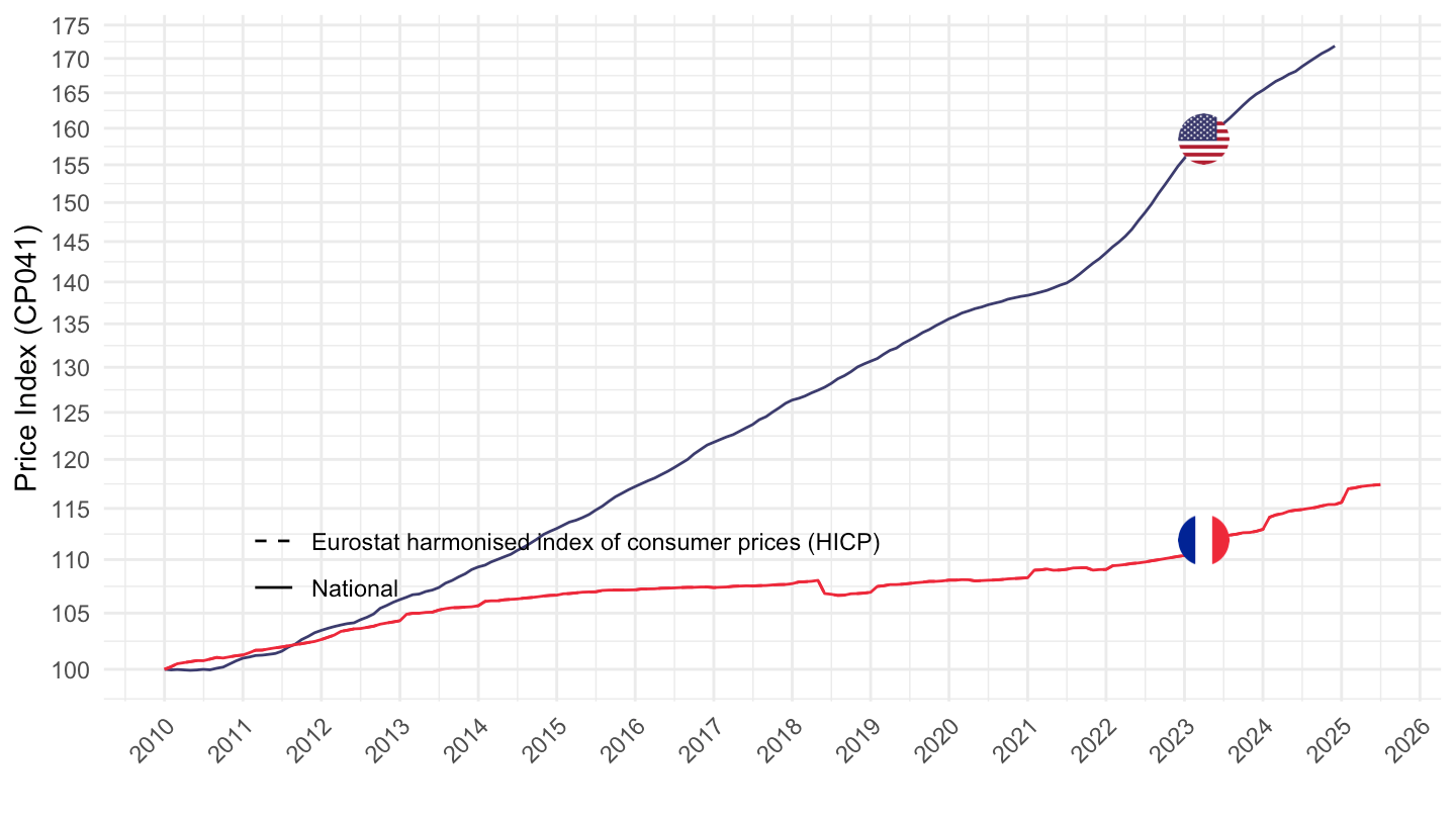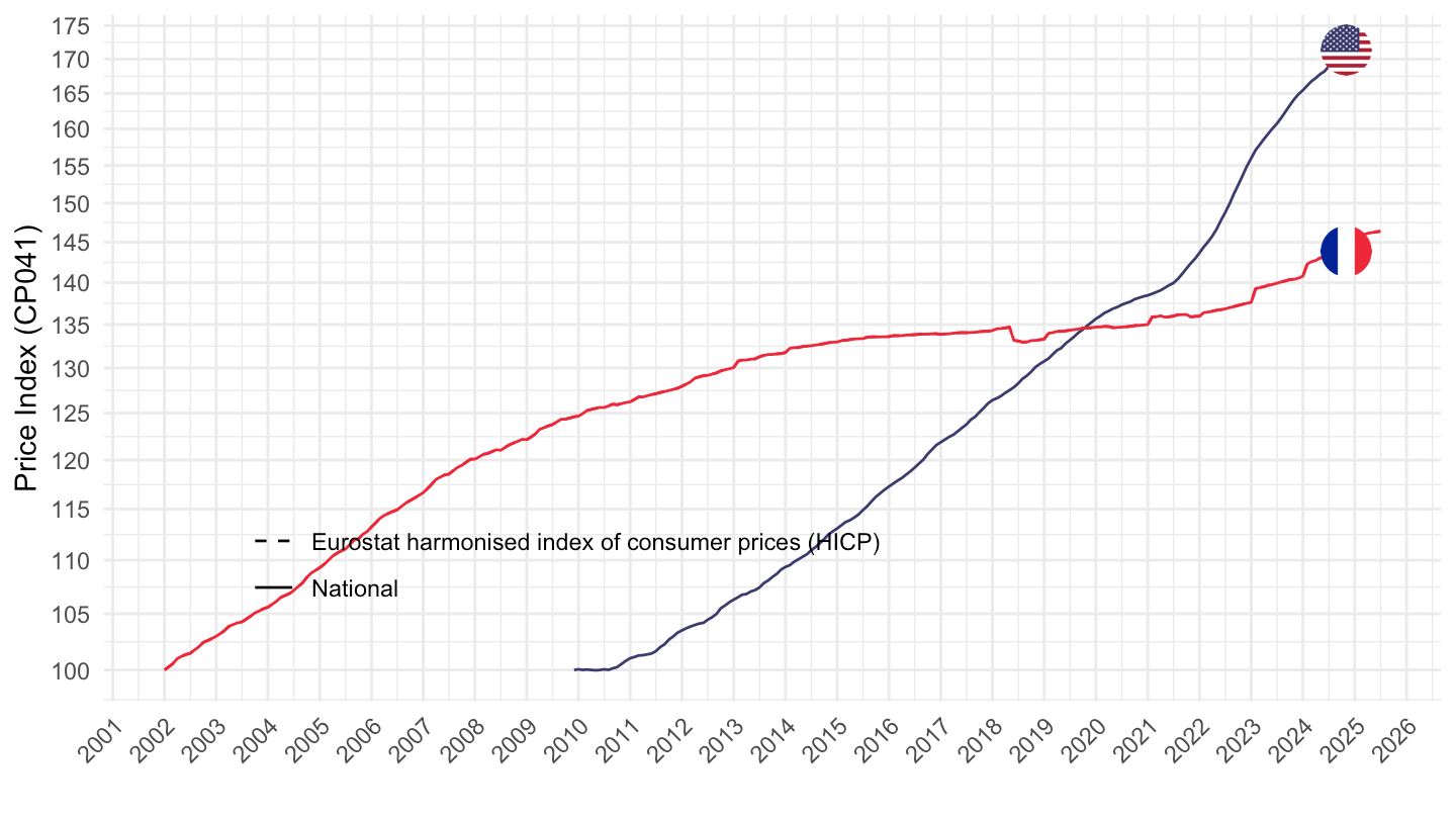 theme_minimal() + xlab("") + ylab("Price Index (CP041)") +