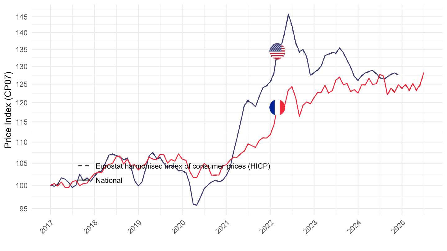 theme_minimal() + xlab("") + ylab("Price Index (CP07)") +