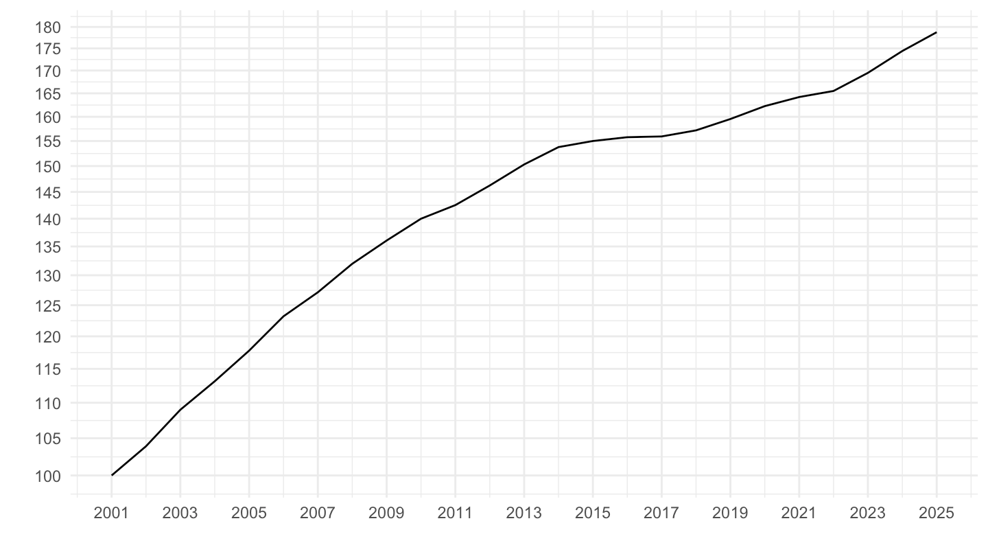 mutate(OBS_VALUE = 100*cumprod(1+value/100),