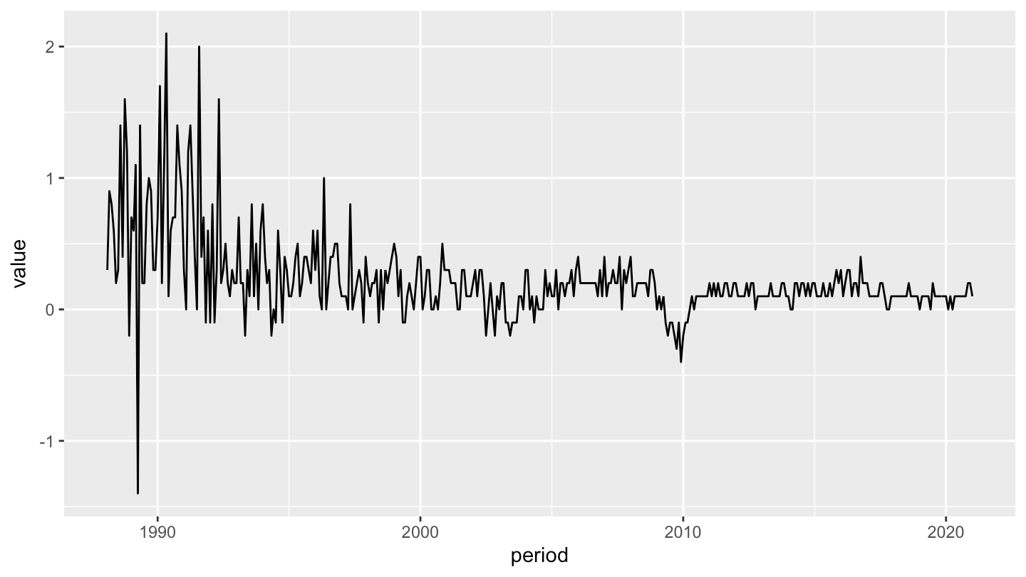 ggplot + geom_line(aes(x = period, y = value))