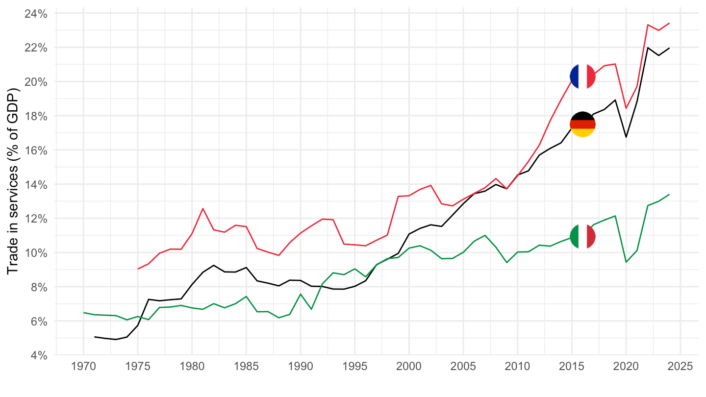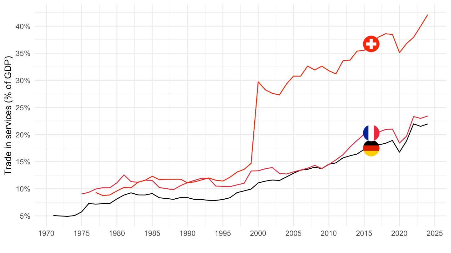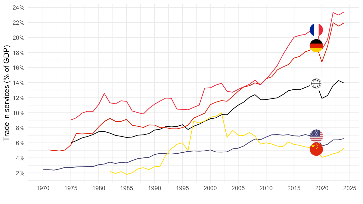 xlab("") + ylab("Trade in services (% of GDP)") +