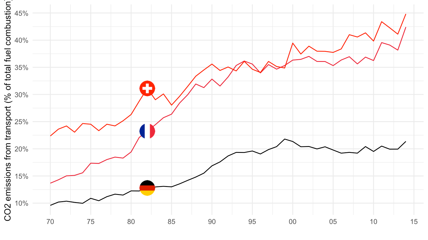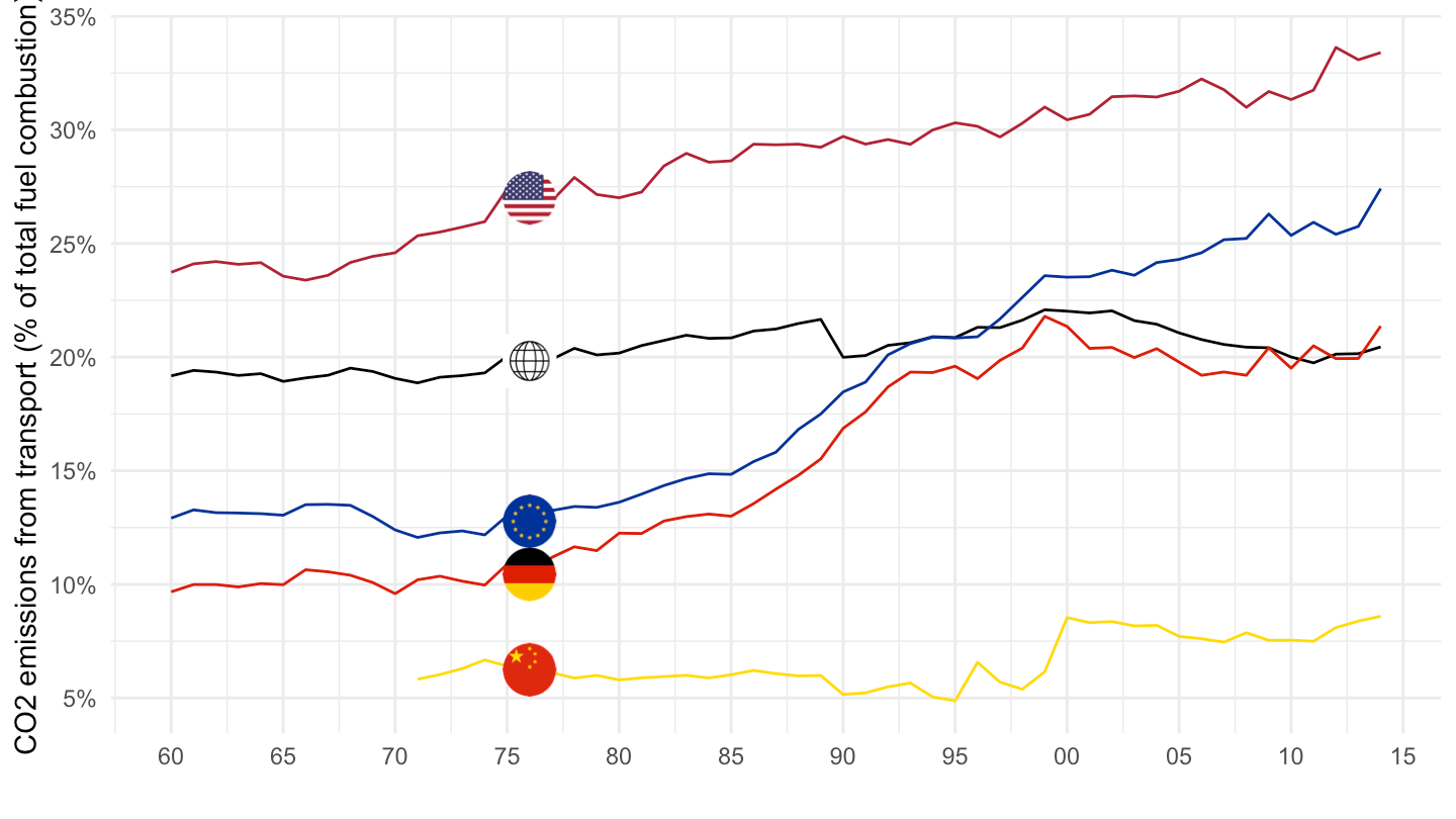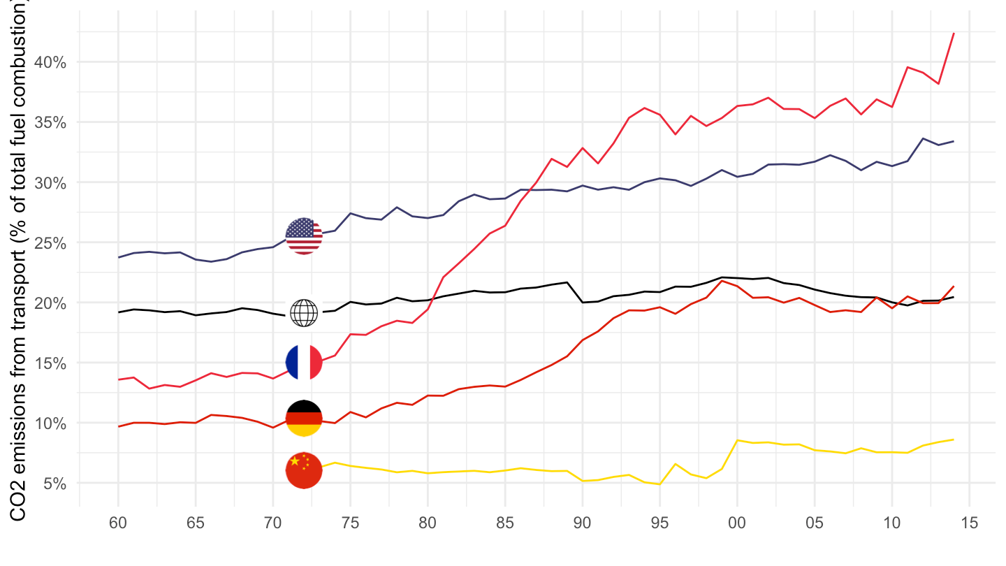 xlab("") + ylab("CO2 emissions from transport (% of total fuel combustion)") +