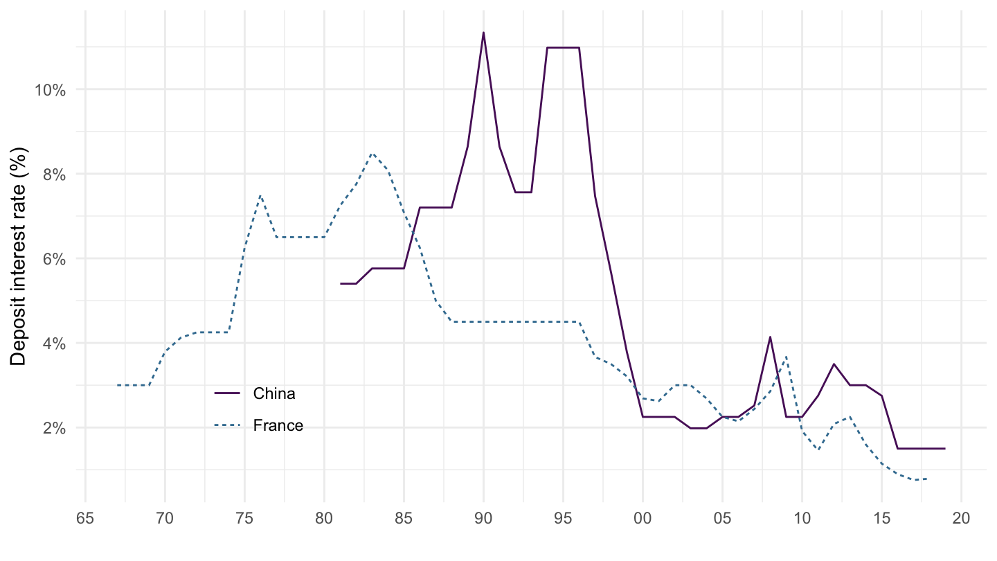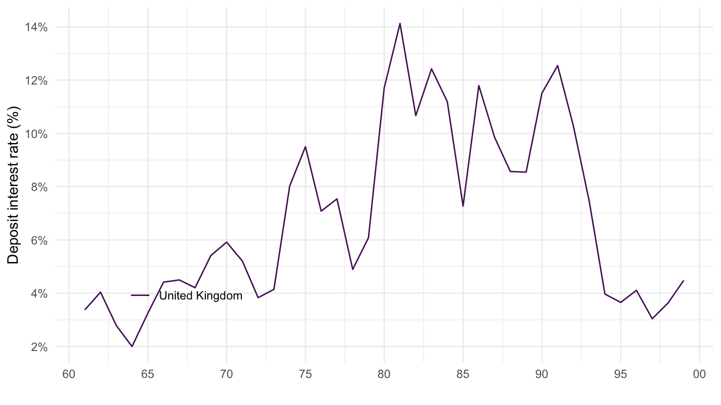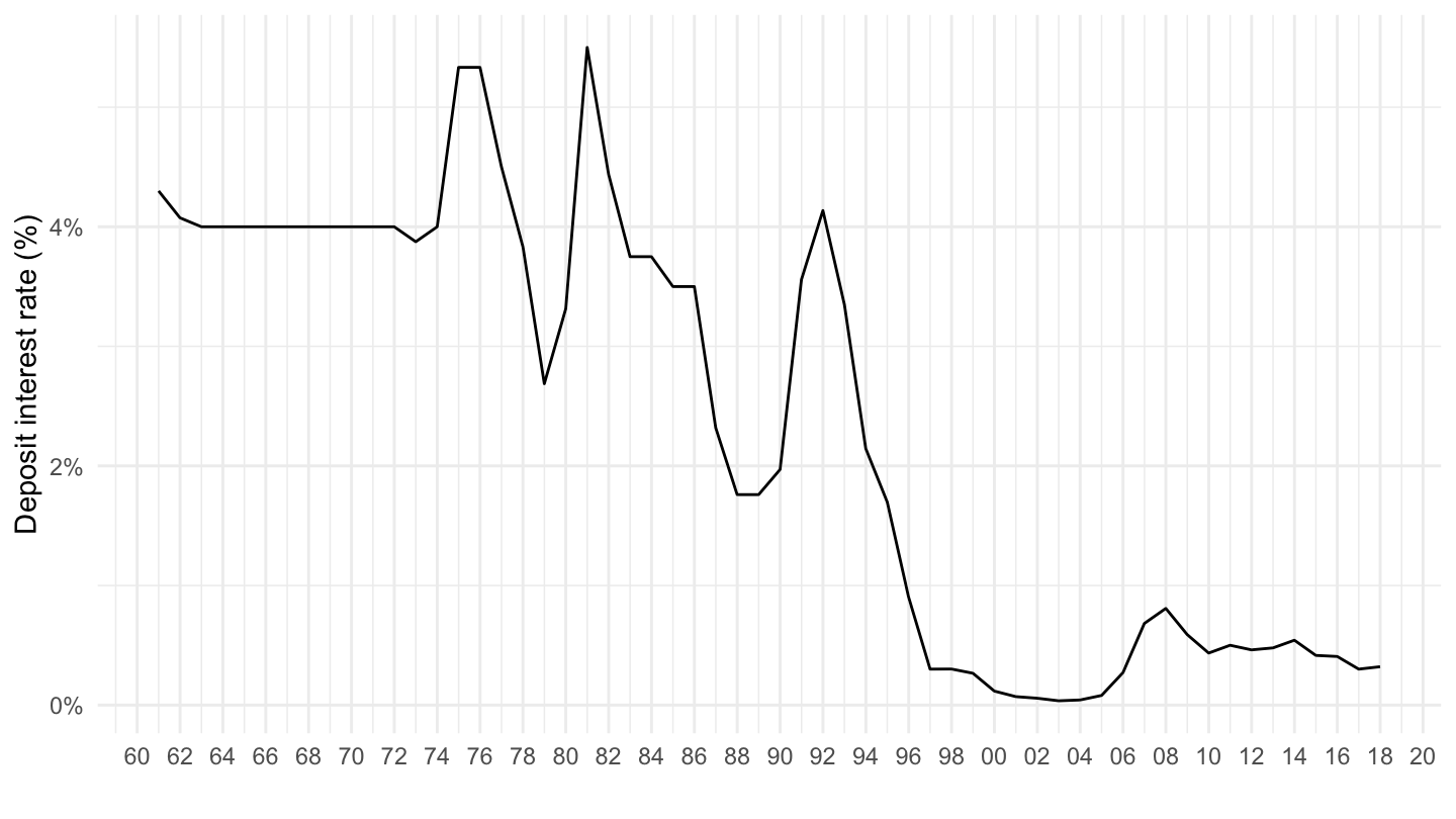 xlab("") + ylab("Deposit interest rate (%)") + theme_minimal() +
