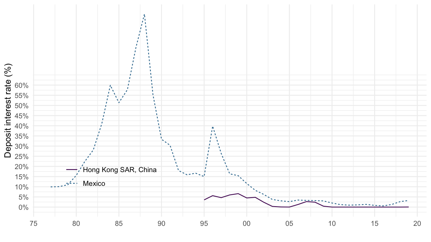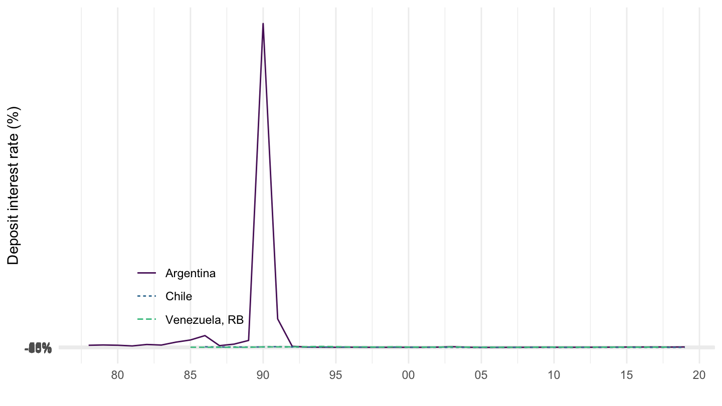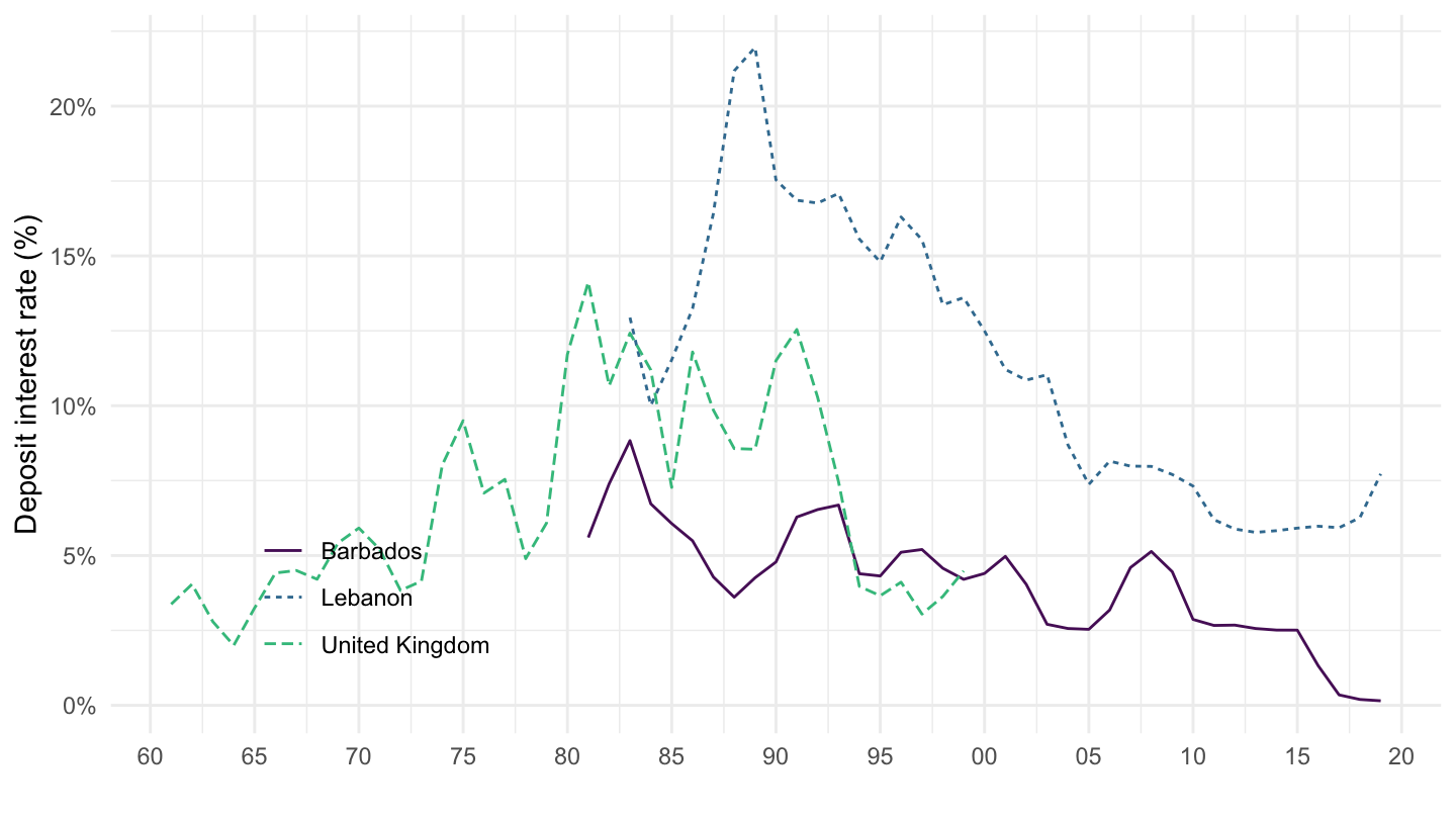 xlab("") + ylab("Deposit interest rate (%)") + theme_minimal() +