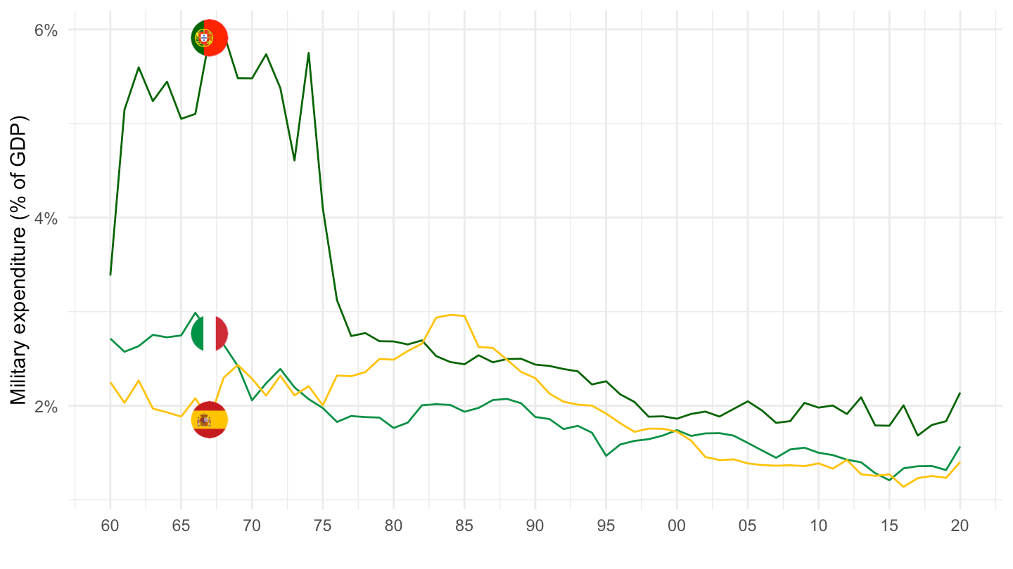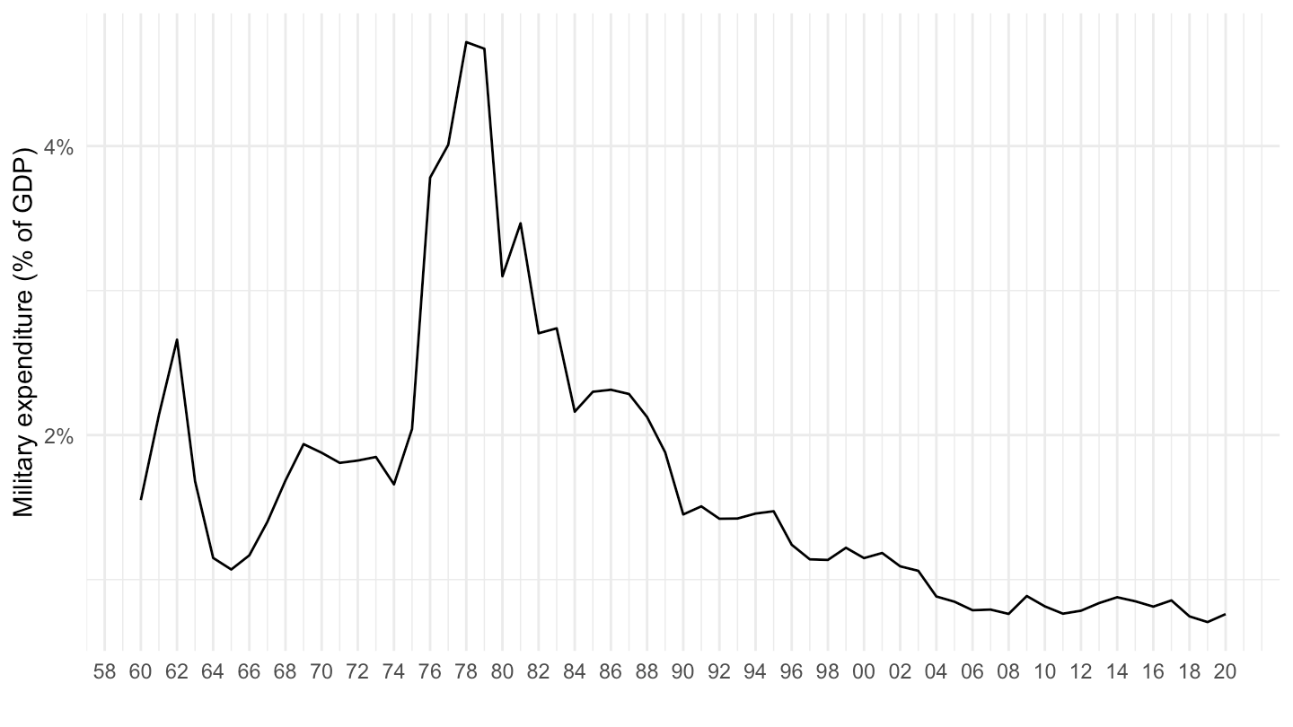 xlab("") + ylab("Military expenditure (% of GDP)") +