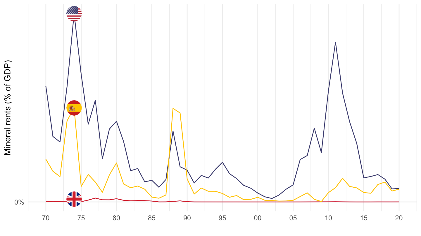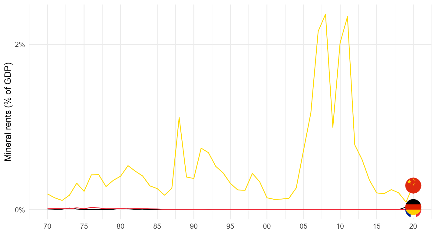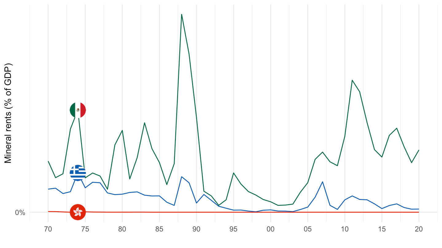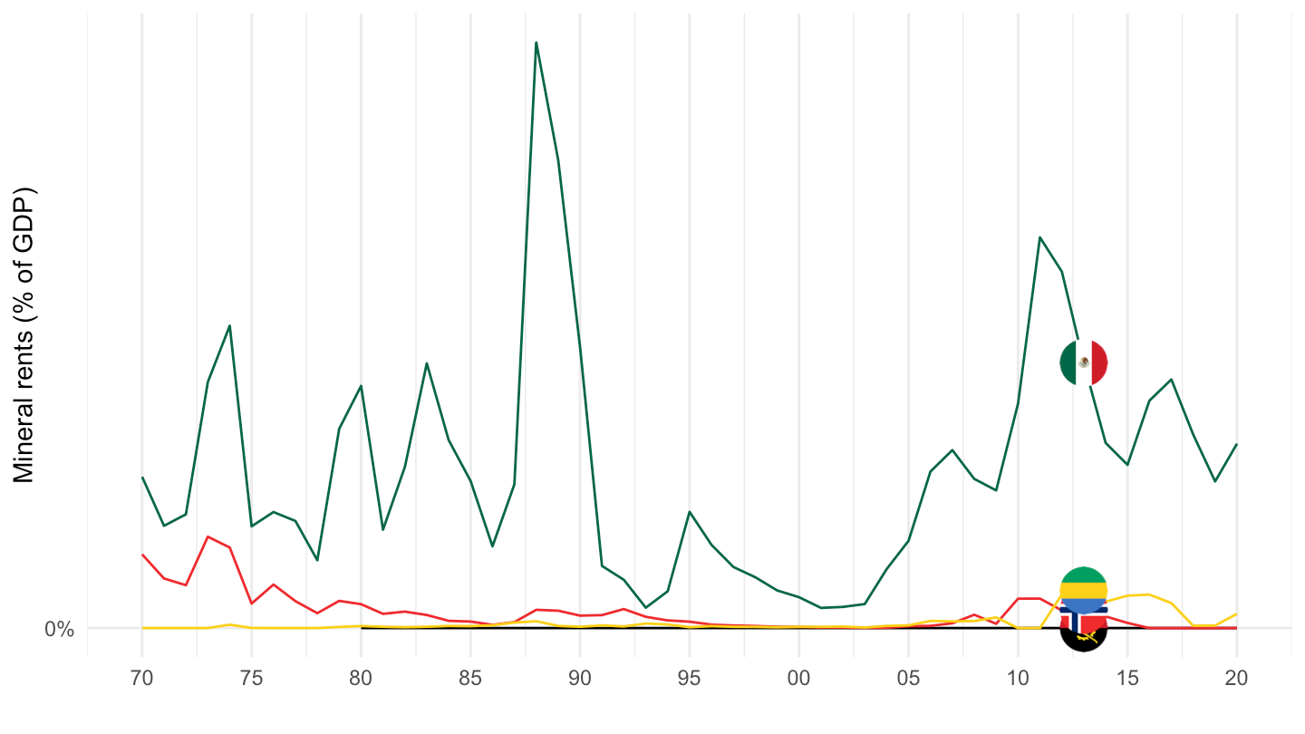 xlab("") + ylab("Mineral rents (% of GDP)")