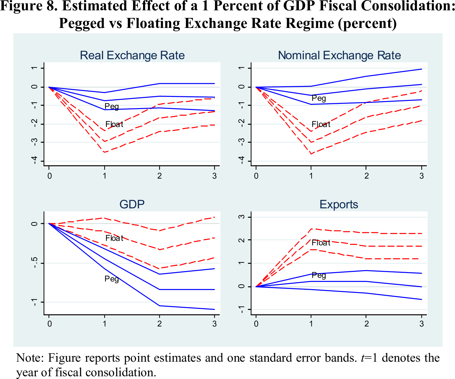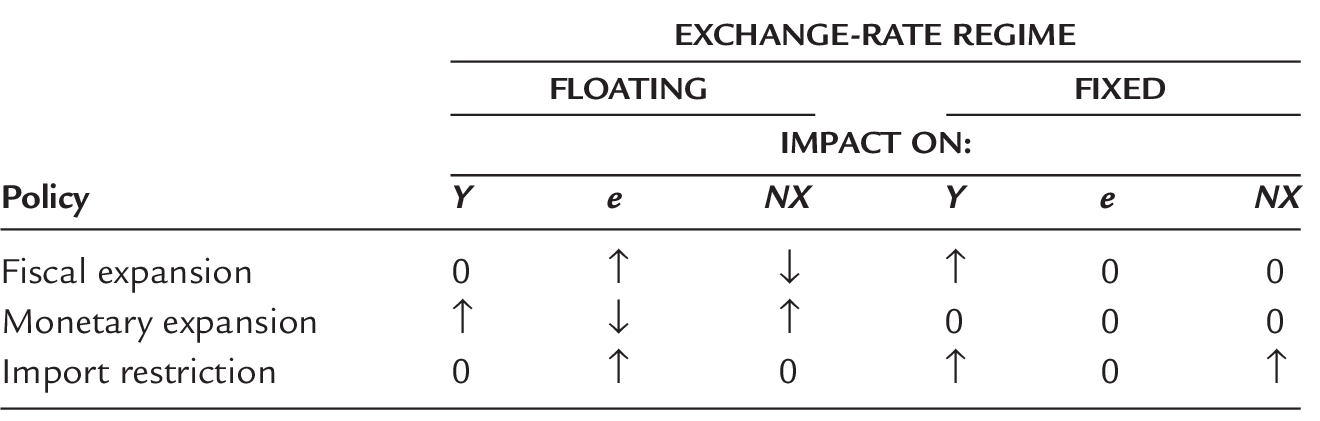 More effects on the trade balance in fixed exchange rate regimes than in floating rate regimes.