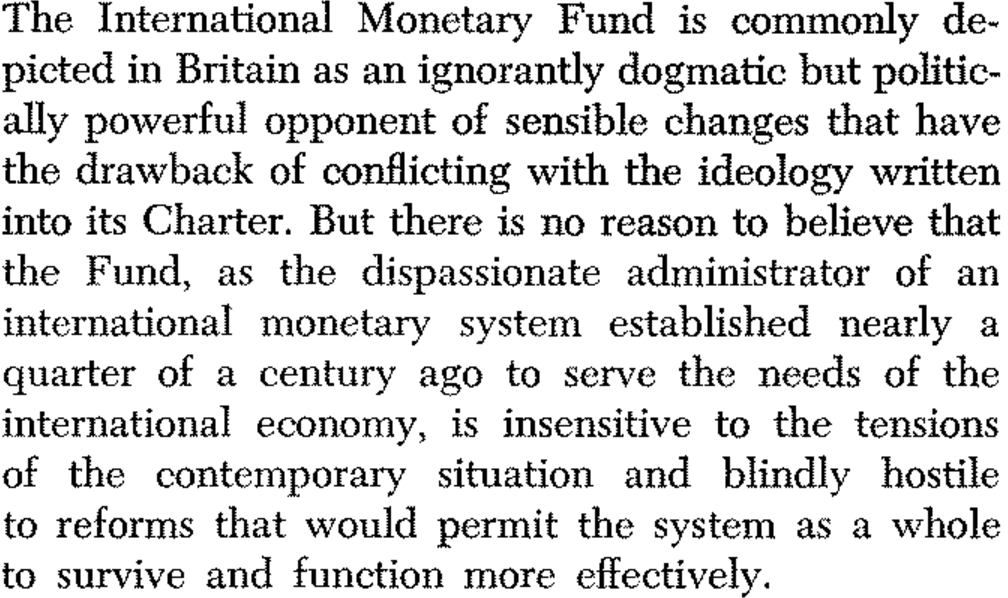 The argument that Johnson made was that if countries had limited reserves, in the face of trade deficits they would be inclined to use protective measures in order to improve their positions.