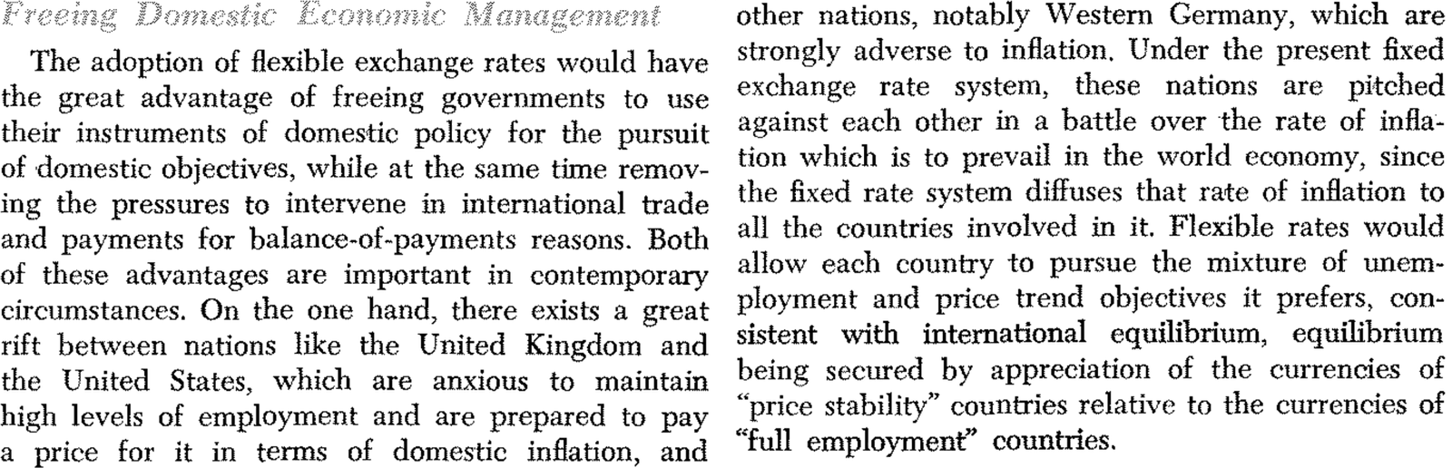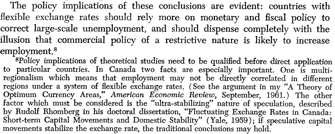 ———. 1961b. “Flexible Exchange Rates and Employment Policy.” The Canadian Journal of Economics and Political Science / Revue Canadienne d’Economique et de Science Politique 27 (4): 509–17. https://doi.org/10.2307/139437.