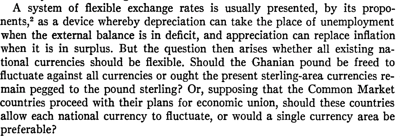 Mundell, Robert A. 1961a. “A Theory of Optimum Currency Areas.” The American Economic Review 51 (4): 657–65. https://www.jstor.org/stable/1812792.