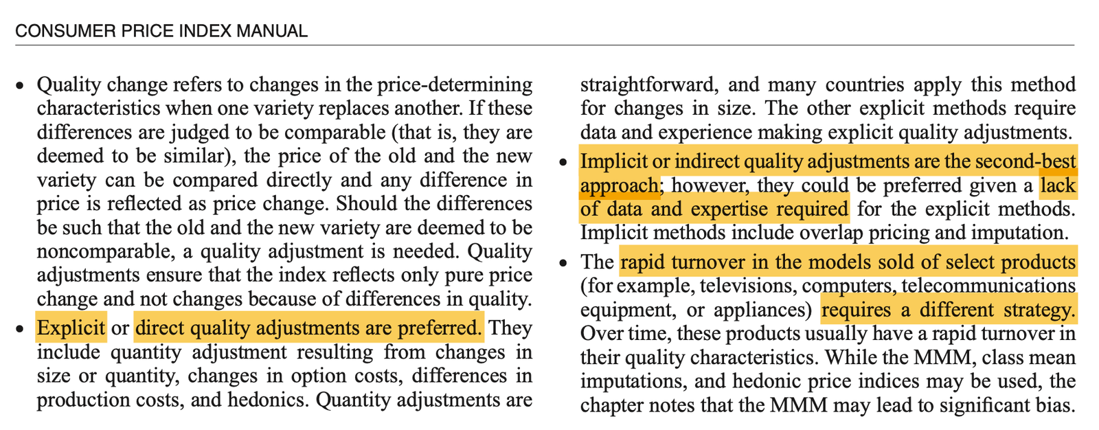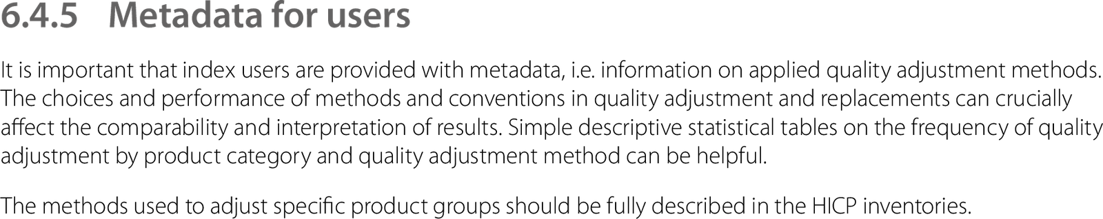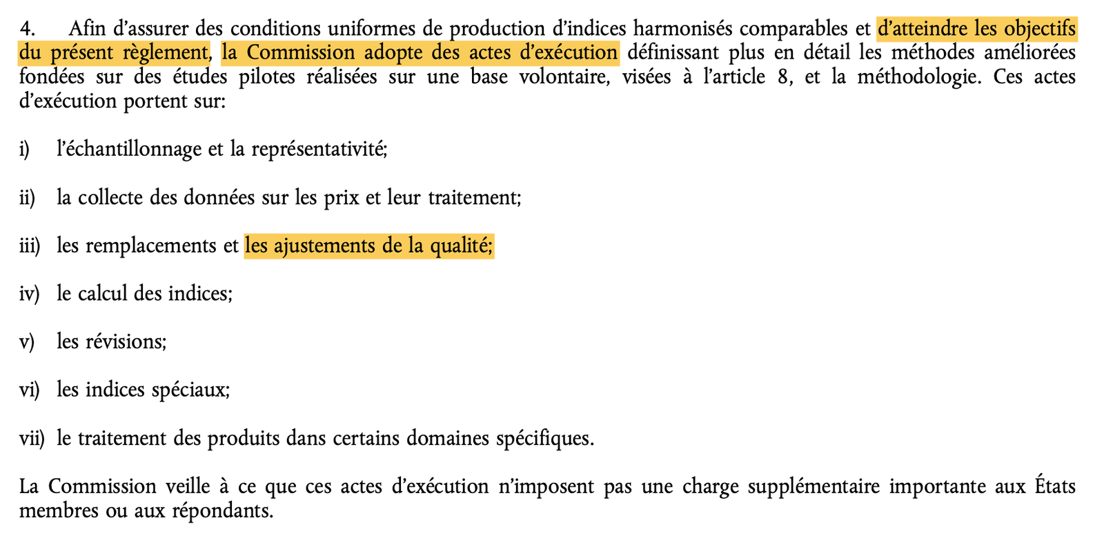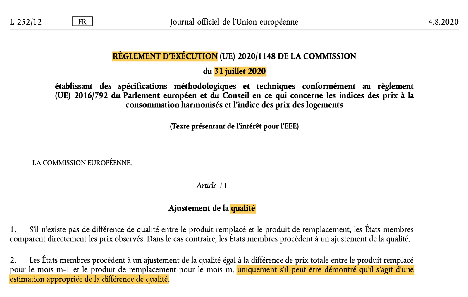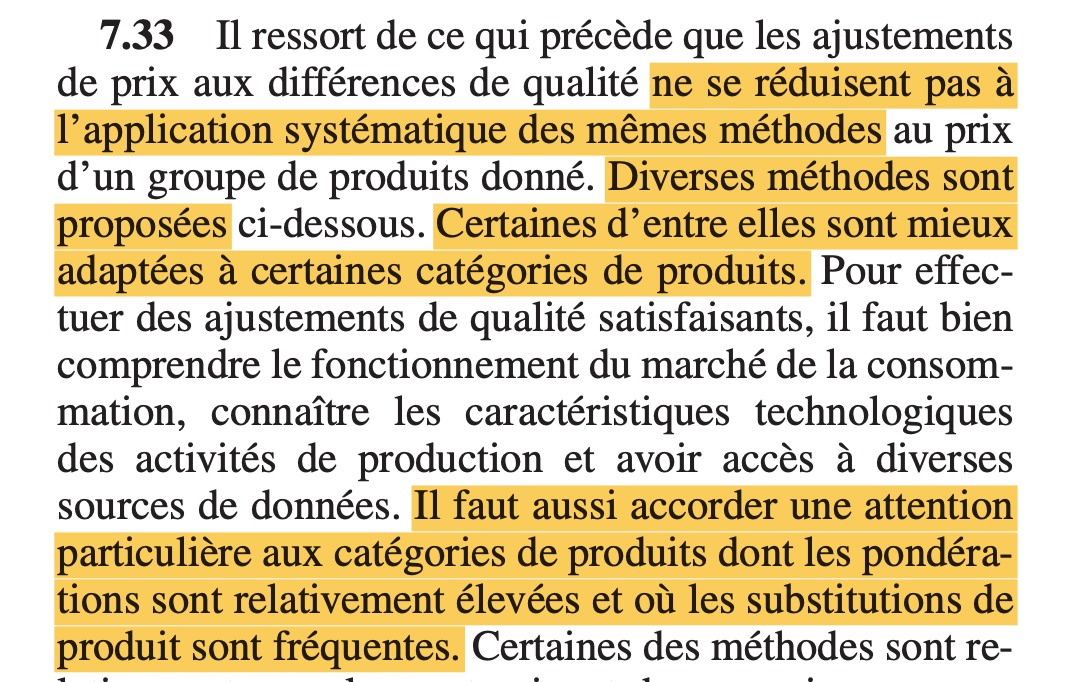 Les ajustements qualité doivent être harmonisés entre pays européens. Lequiller (1997) recommandait déjà il y a plus de 25 ans la « mise en commun des moyens de recherche sur les effets-qualité des instituts de statistique européens ».