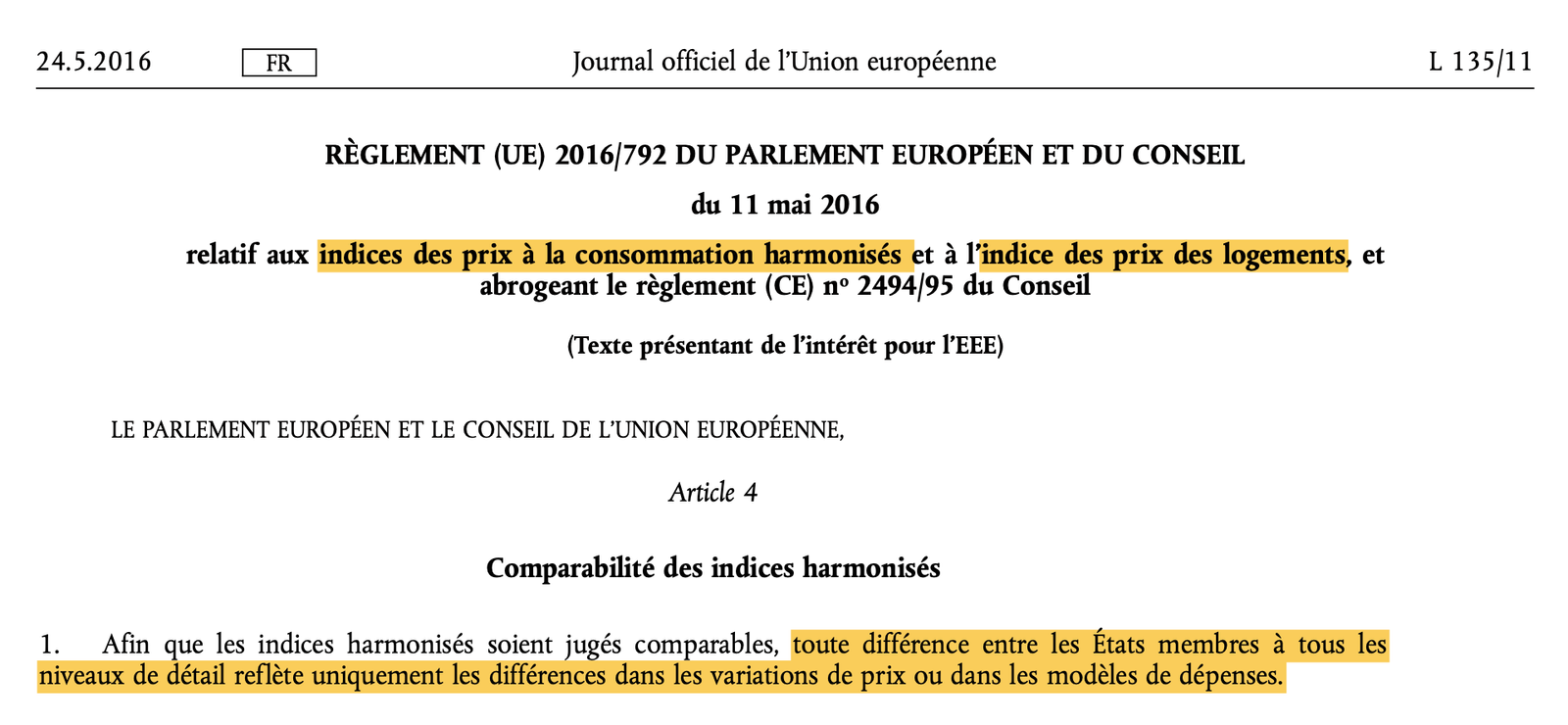 Hélas, c’est vrai aussi pour l’indice IPCH qui n’est pas aussi harmonisé qu’on ne peut le croire à partir du H = Harmonisé…
